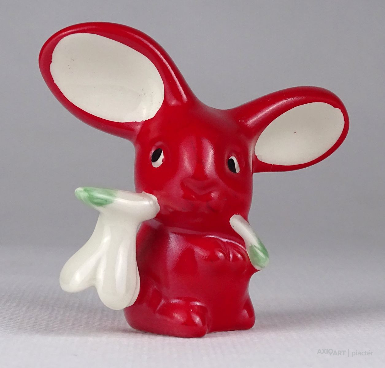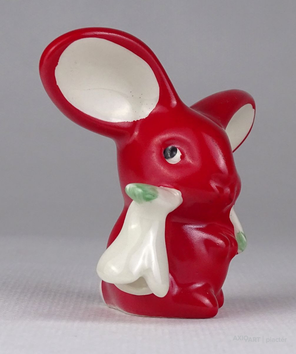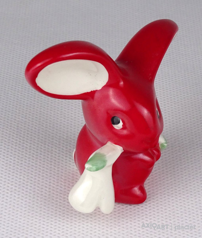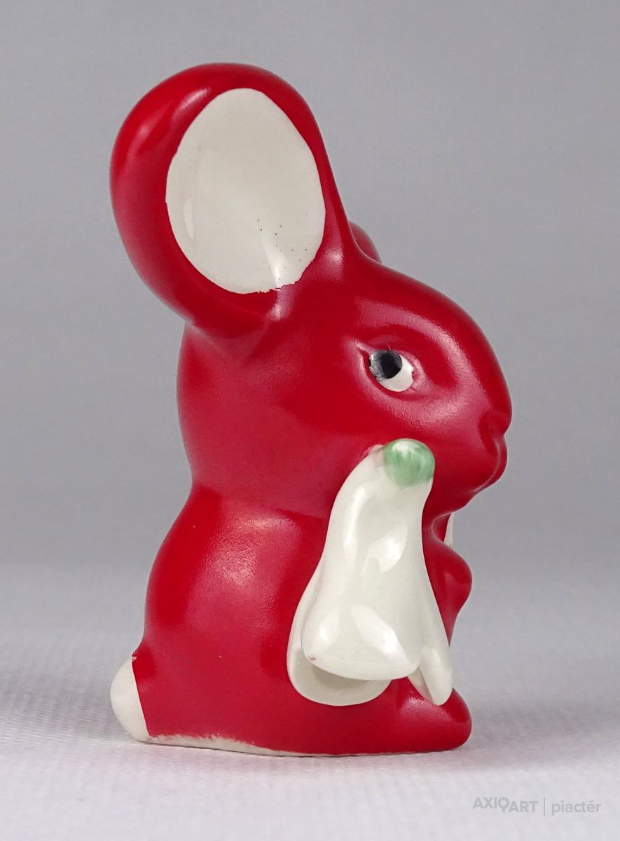 Régi jelzett Hummel - Goebel piros porcelán nyúl nyuszi 6 cm