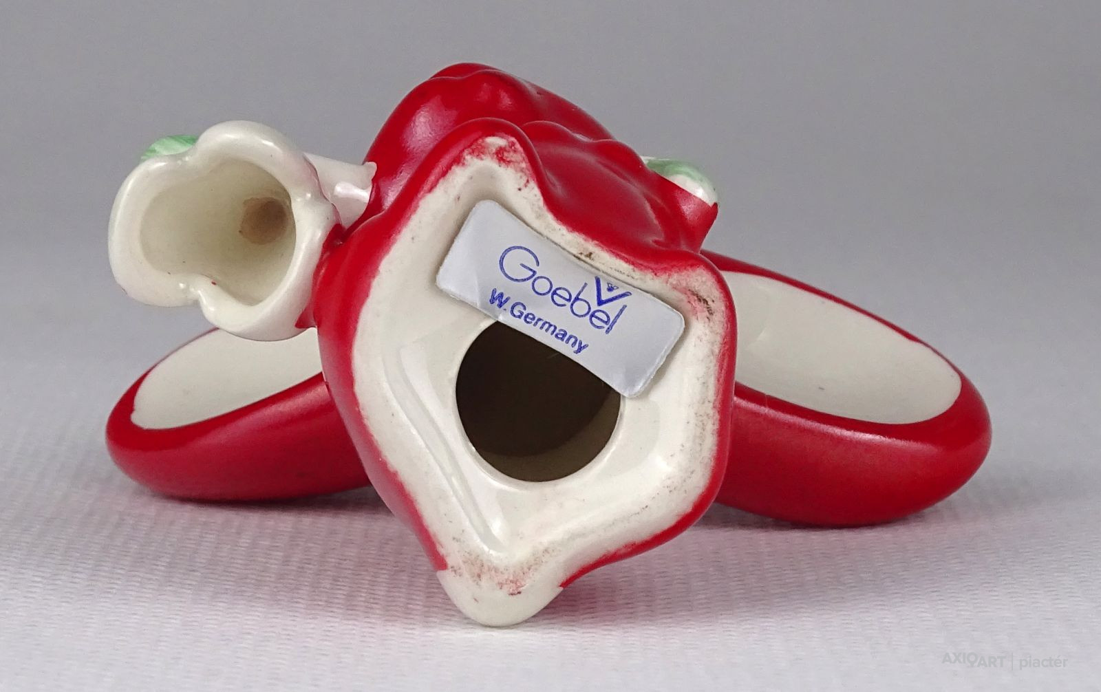 [1R259/Z016] Hibátlan állapotú, jelzett Hummel - Goebel porcelán piros nyuszi figura. Alján címke, rajta felirat: GOEBEL W. GERMANY Magasság: 6 cm Szélesség: 6.5 cm Súly: 0.035 kg