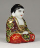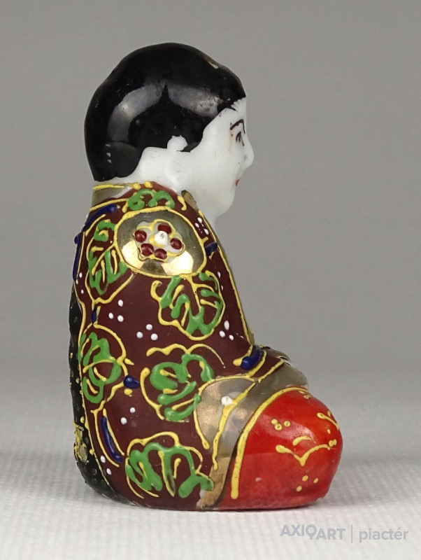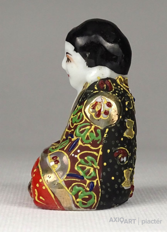 [1Q880/BX-2] Szép állapotú kézi festéssel díszített, ülő Satsuma porcelán figura. Kisebb kopások láthatók rajta, lásd fotó. Alján jelzés pirossal: JAPAN Magasság: 6.5 cm Szélesség: 5 cm Súly: 0.03 kg