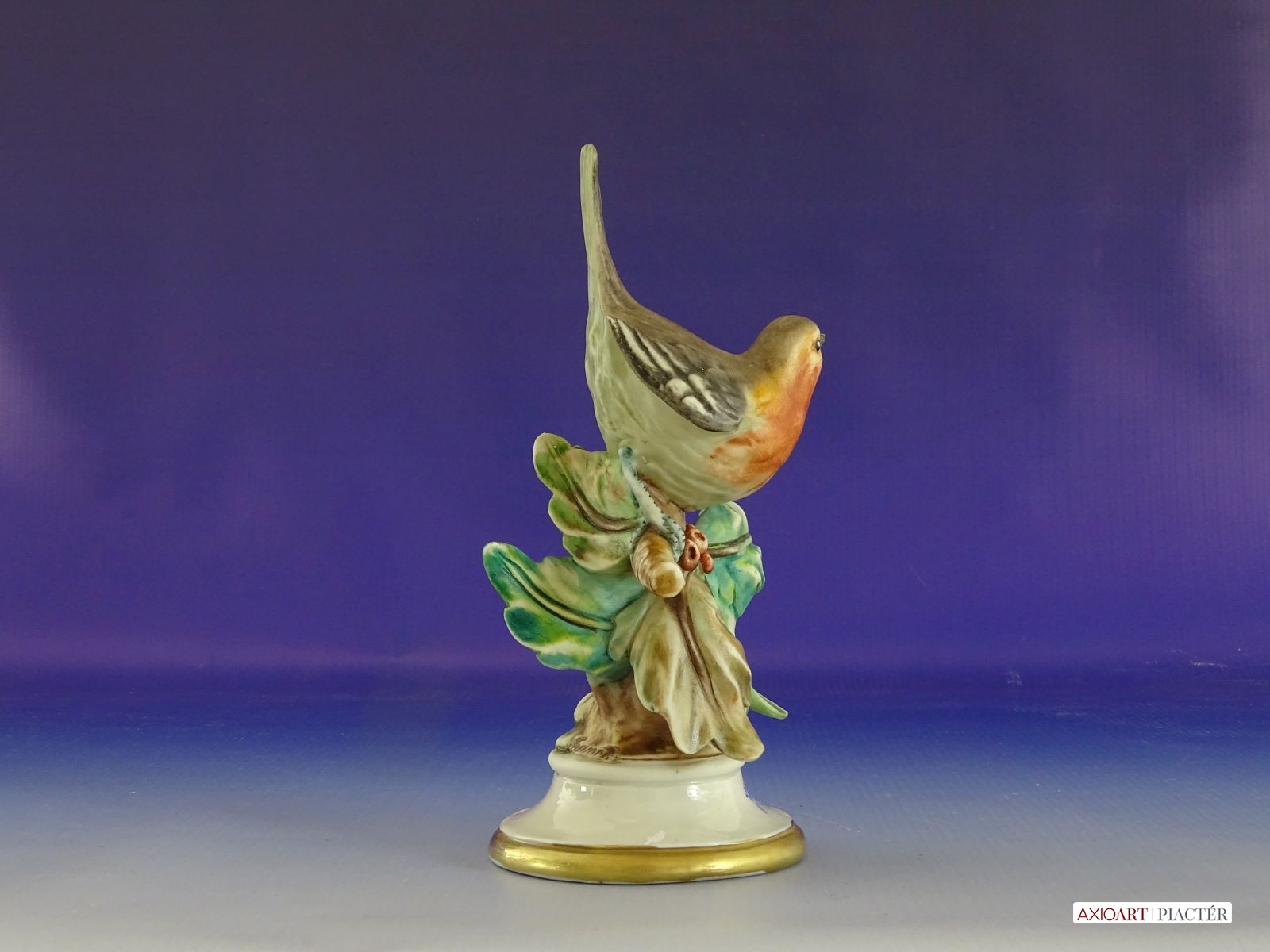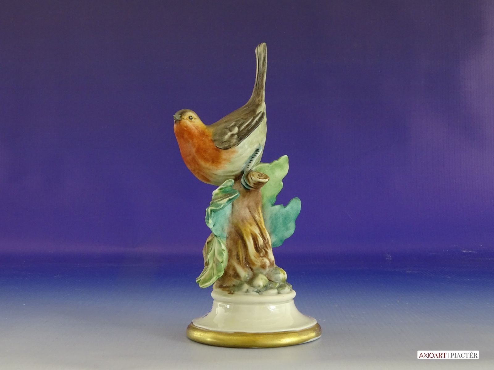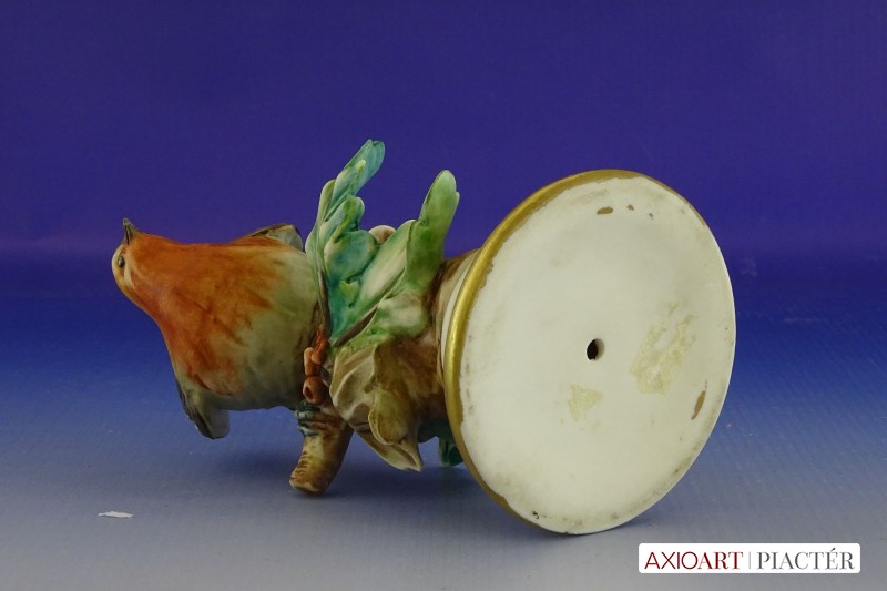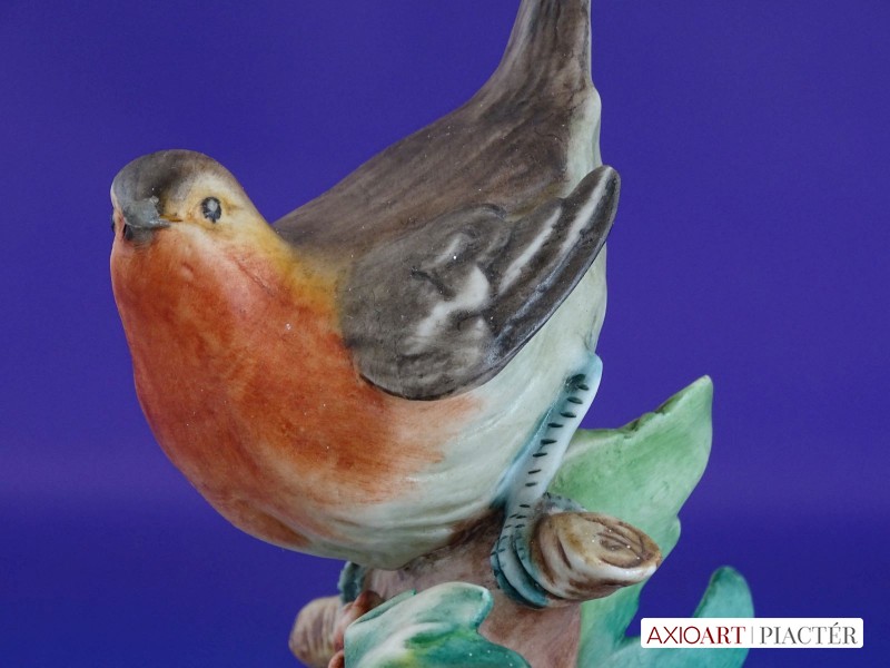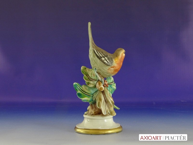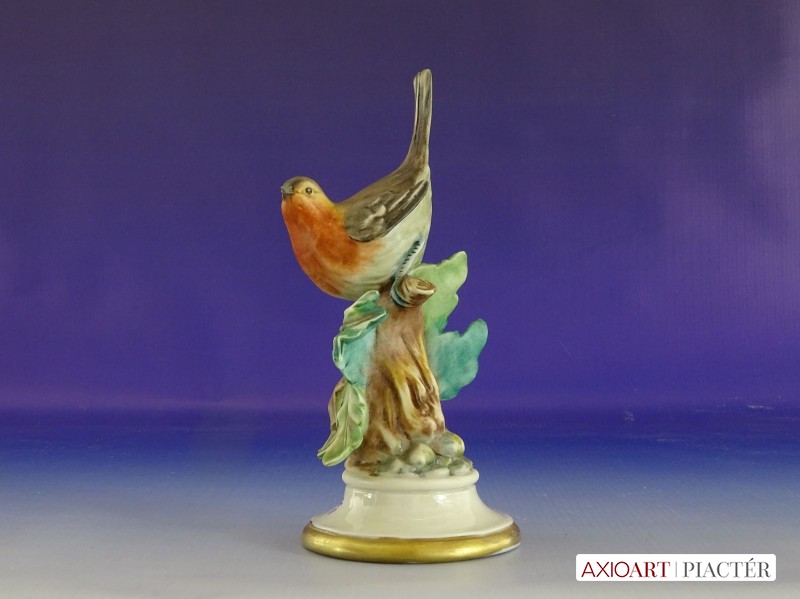 Régi jelzett porcelán vörösbegy talapzaton