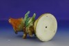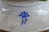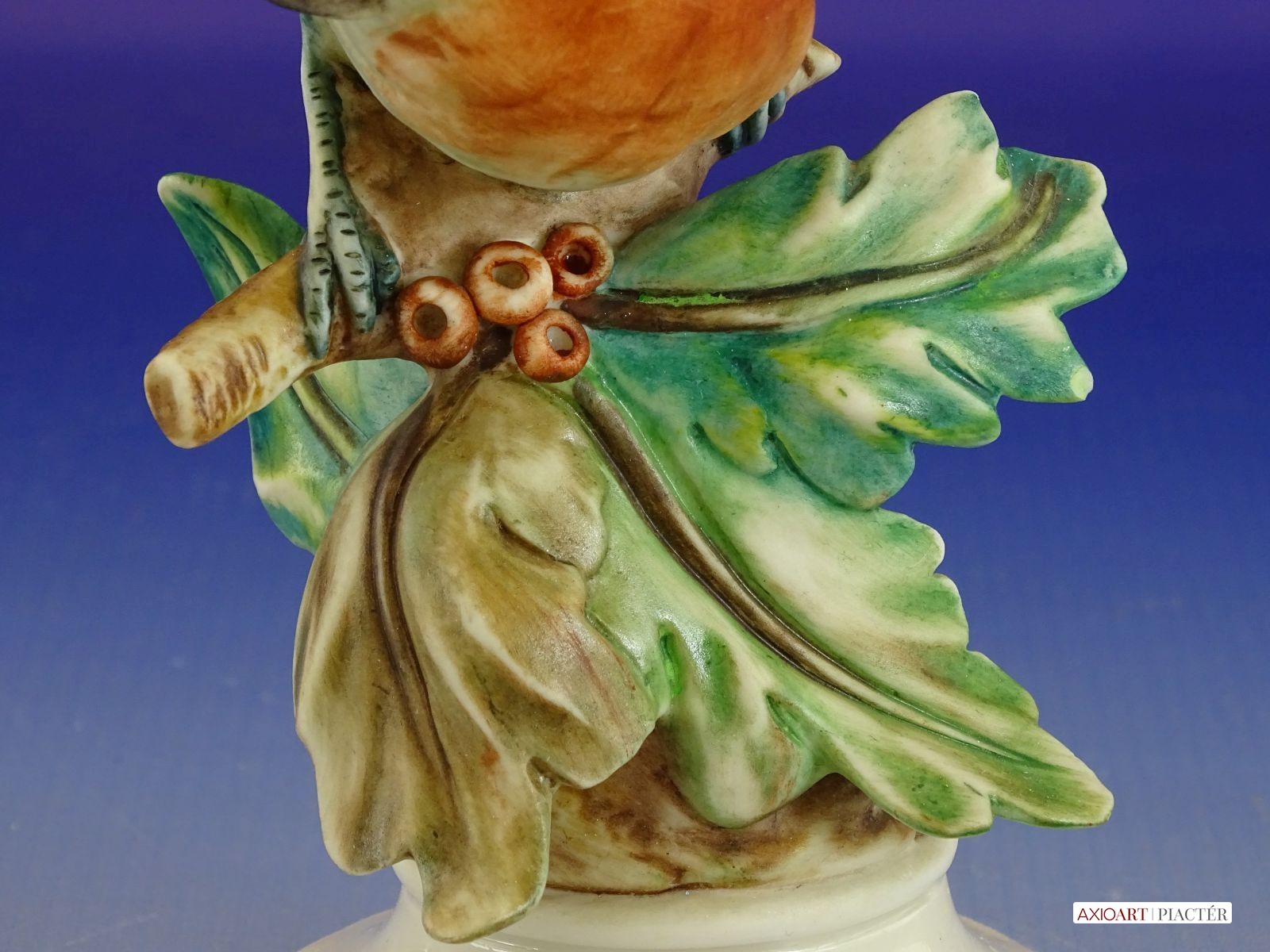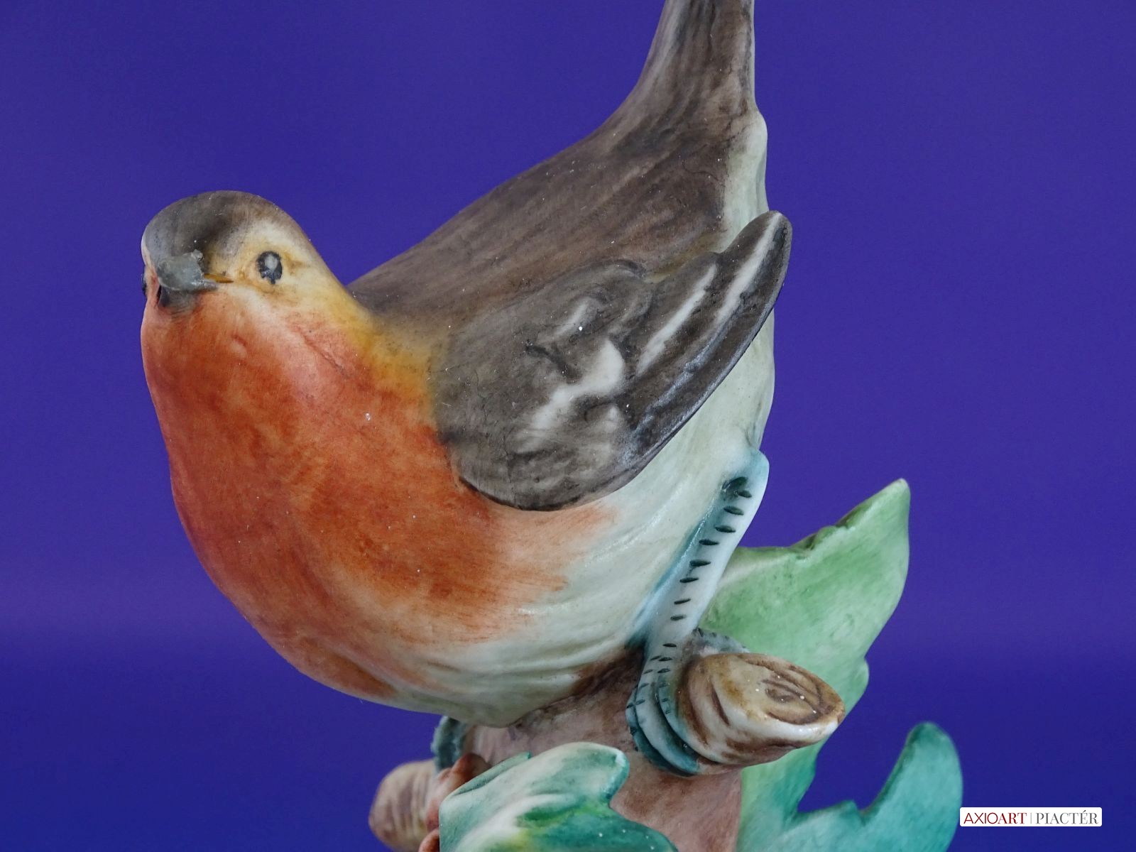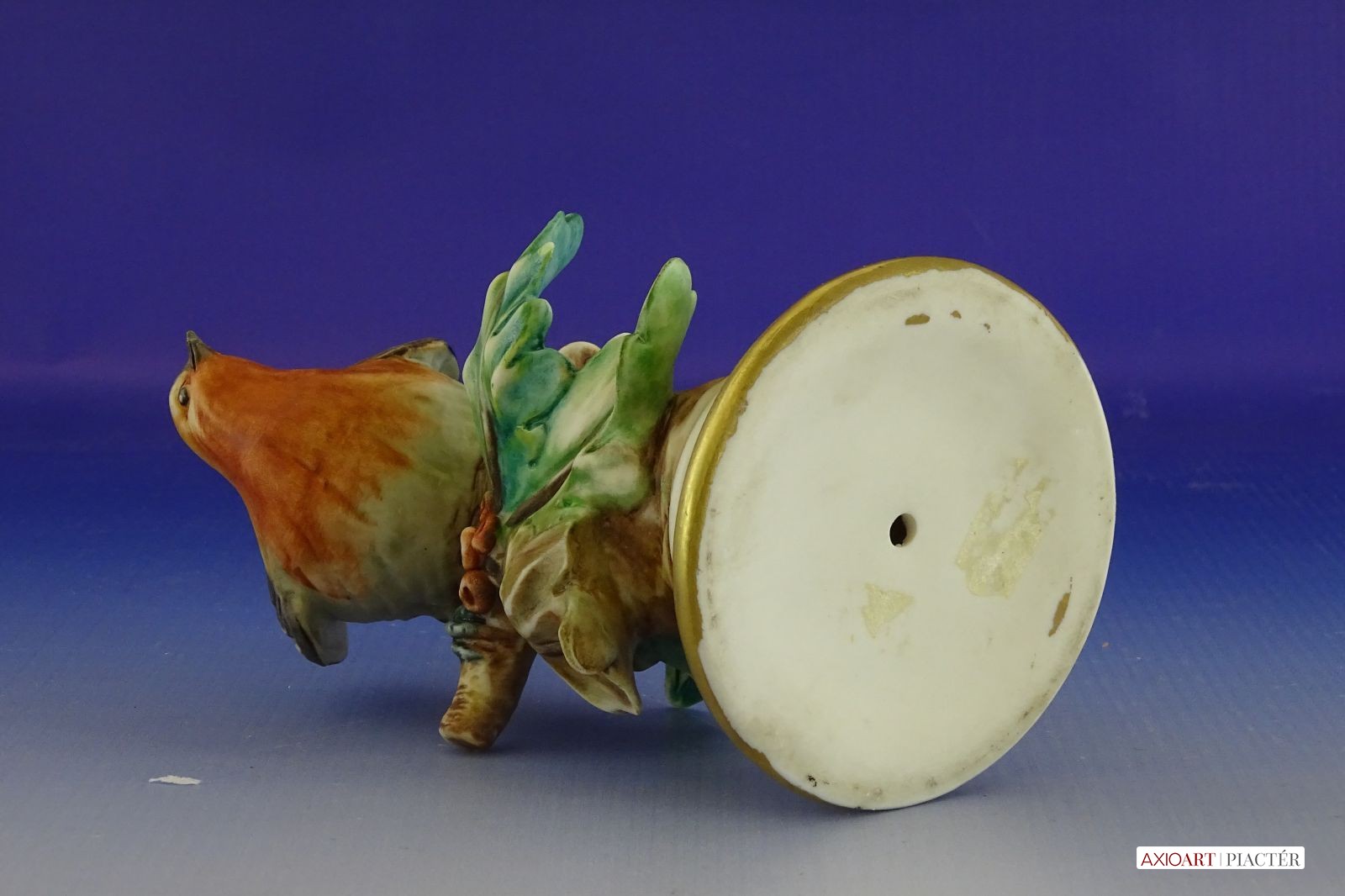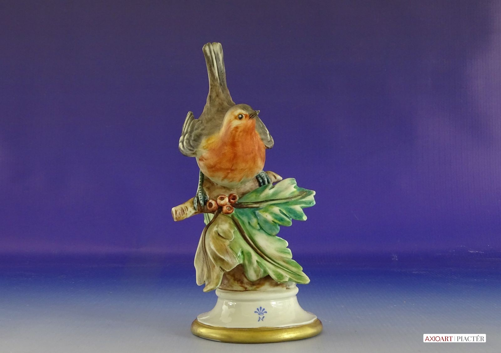 Régi jelzett porcelán vörösbegy talapzaton