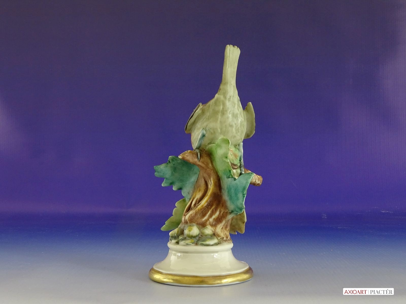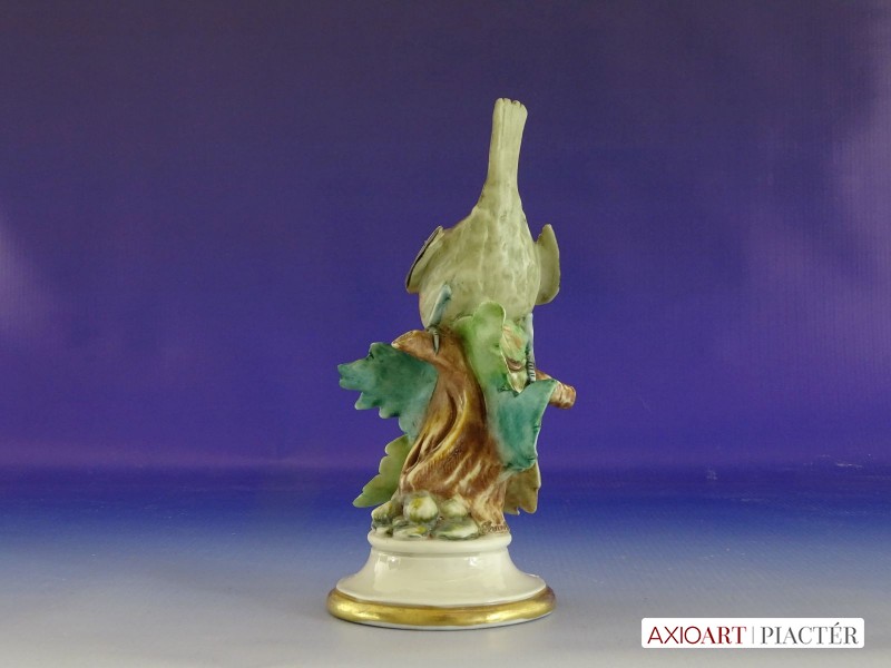 Hibátlan állapotú, jelzett francia porcelán kismadár, talapzaton.