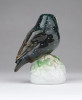 Hibátlan állapotú, talapzaton álló, jelzett régi szépen kidolgozott porcelán madár.