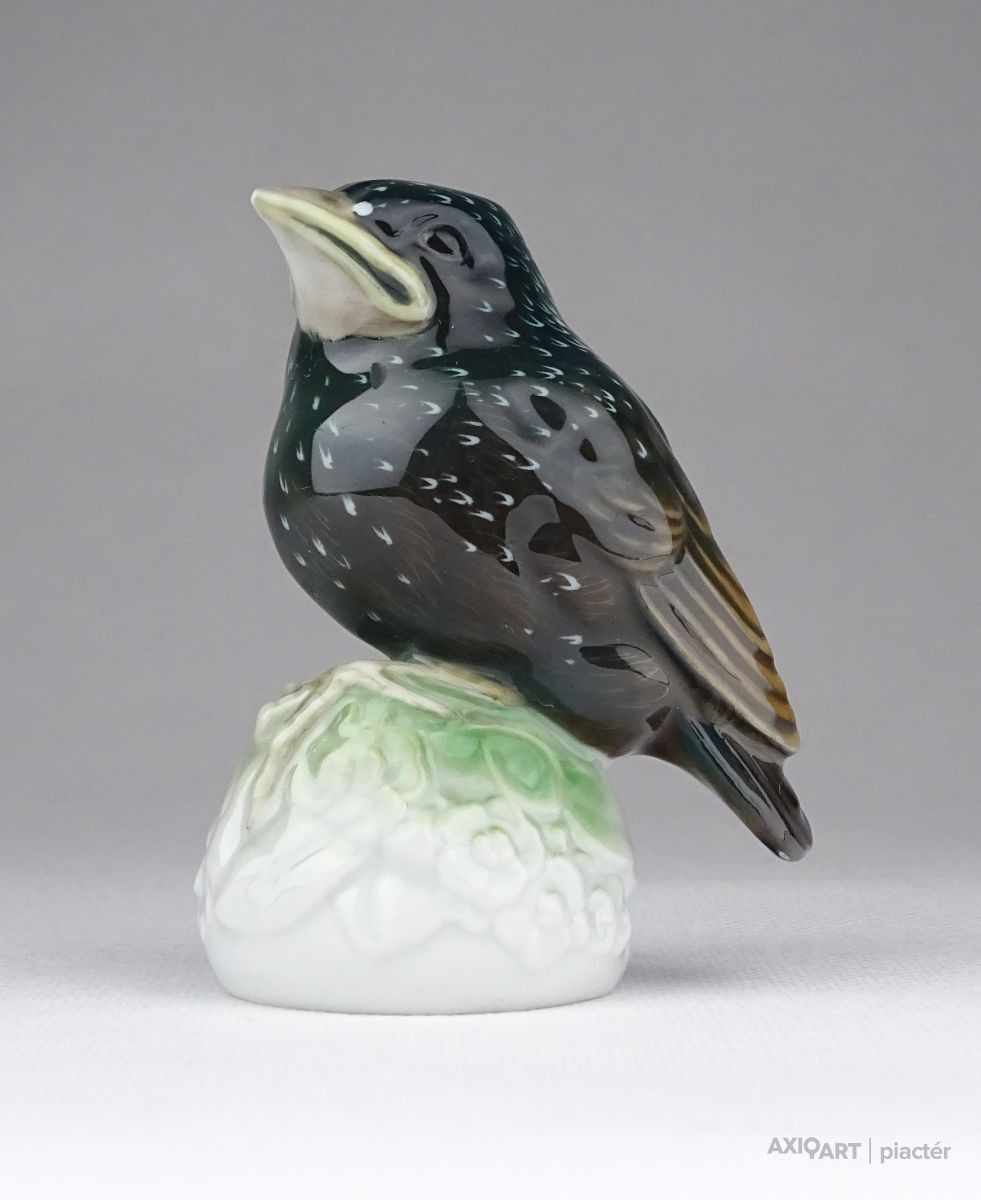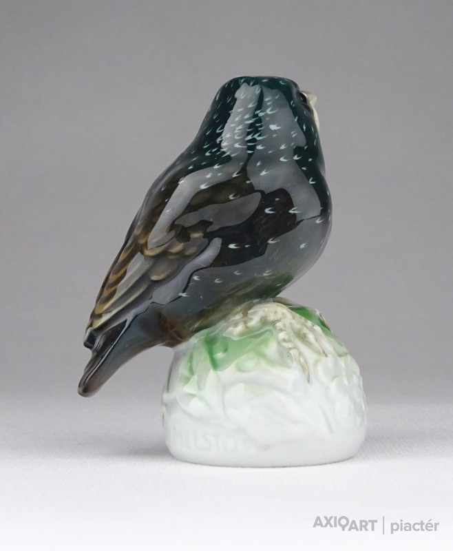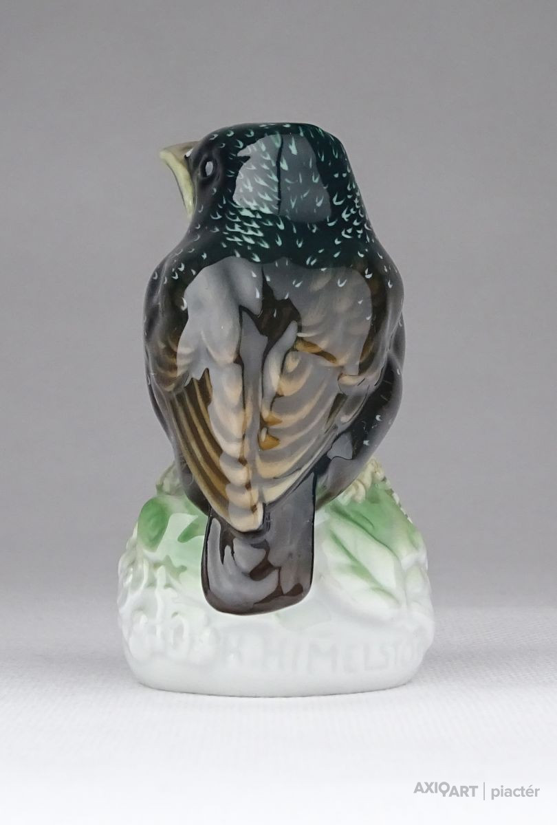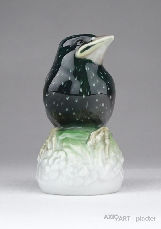 [0Z316/VTR-2] Hibátlan állapotú, talapzaton álló, jelzett régi szépen kidolgozott porcelán madár. Hátul a talapzat peremén formatervező neve: H. HIMMELSTOSS Alján zöld koronás márkajelzés: ROSENTHAL GERMANY KUNSTABTEILUNG SELB Formaszám: 1291 Magasság: 7.5 cm Szélesség: 5.5 cm Hosszúság: 4.2 cm Súly: 0.09 kg
