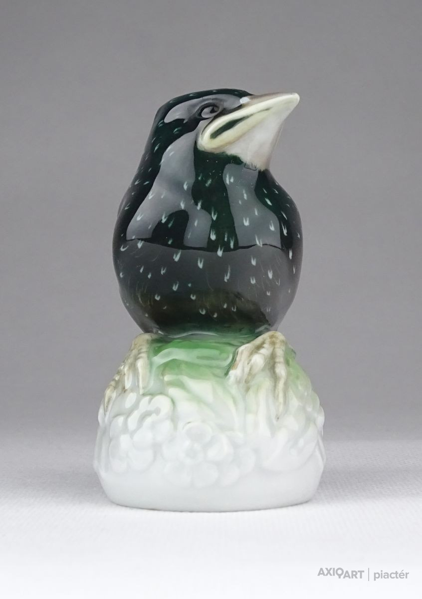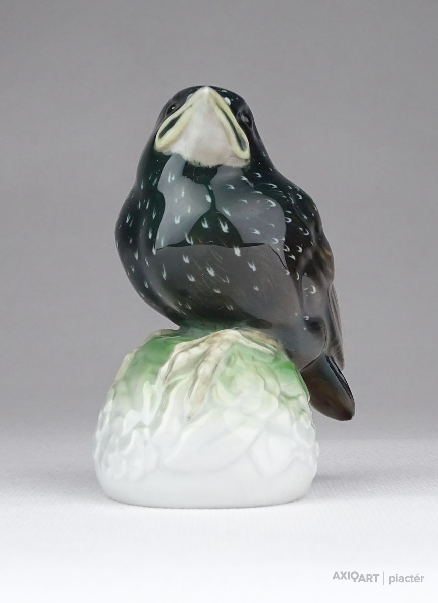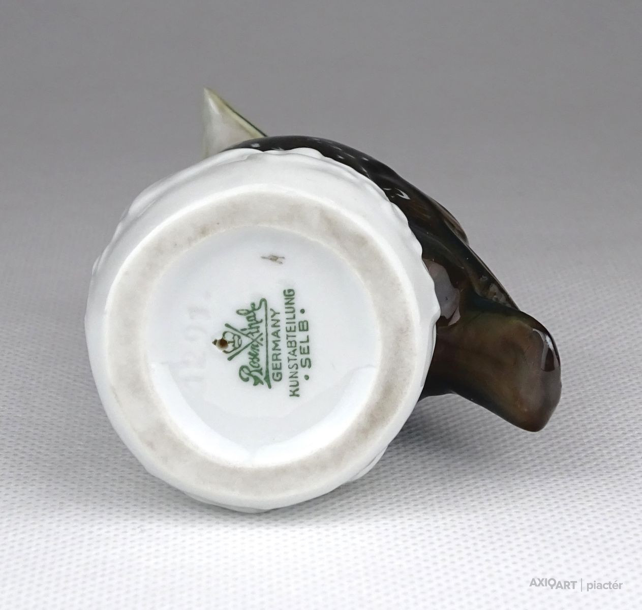 [0Z316/VTR-2] Hibátlan állapotú, talapzaton álló, jelzett régi szépen kidolgozott porcelán madár. Hátul a talapzat peremén formatervező neve: H. HIMMELSTOSS Alján zöld koronás márkajelzés: ROSENTHAL GERMANY KUNSTABTEILUNG SELB Formaszám: 1291 Magasság: 7.5 cm Szélesség: 5.5 cm Hosszúság: 4.2 cm Súly: 0.09 kg