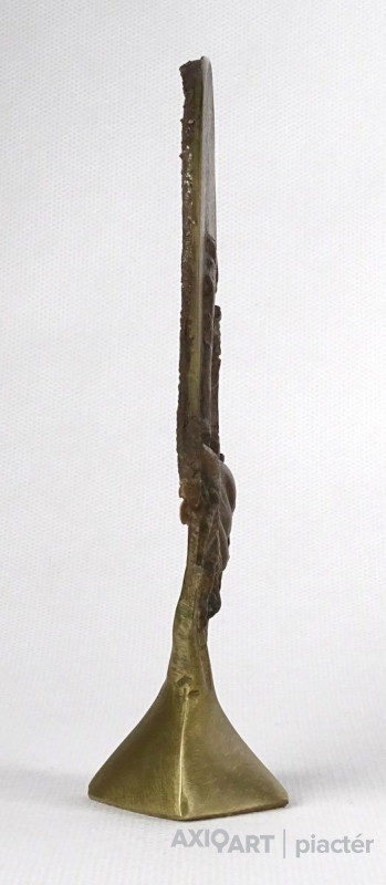 [1Y029/Z018] Olaj farost festmény, üveglap mögött, hibátlan képcsarnokos keretben. Hátoldalán Képcsarnok Vállalat papír címkéje: A művész neve: SCHÉNER MIHÁLY A kép címe: TÁJ Magasság: 66.5 cm Szélesség: 86 cm Súly: 6.54 kg Schéner Mihály festő, grafikus, szobrász, keramikus, bábtervező Medgyesegyháza, 1923-01-9 Elhalálozott: Budapest, 2009. május 11. Honlap: http://www.kormendigaleria.hu/kiadvany.html 1942-1947: Magyar Képzőművészeti Főiskola, tanára: Rudnay Gyula. 1978: Munkácsy-díj; 1984: érdemes művész; 1989: kiváló művész; 1995: Kossuth-díj. 1992-től a Magyar Művészeti Akadémia, 1993-tól a Széchenyi Irodalmi és Művészeti Akadémia tagja. 1956-ig tanított. 1982: Nagyatádi Faszobrász Alkotótelep, 1985: Nemzetközi Acélszobrász Alkotótelep, Dunaújváros. A stílusában felismerhető, mégis sokféle műtárgyat létrehozó ~ gazdag, állandóan alakuló életműve a folyton változó világban helyét kereső, az alkotói szabadságot megvalósító XX. századi képzőművész példázata lehetne. Magát expresszív-szürrealista alkotónak nevezi. Egyaránt dolgozik festékkel, textillel, fával, fémmel. Rajzol, szerkeszt, farag, épít, gyúr, varr és ragaszt, felhasználja a mézesbábok öntőformáit. Festő, rajzoló, textilszobor- és bábkészítő, fazekas, asztalos, esztergályos. Háromlépcsős folyamatban gondolkozik: rajzban tervez, majd fest, szobrot készít, “formába önt”, mindig a végső plasztikai megoldást keresi. Ami állandó és mégis játékosan változékony megjelenésű Schéner művészetében, az a gyermekkori emlékek által meghatározott népi mesterségek iránti tiszteletet kifejező motívumkincs, a tárgyi folklór formakészlete, amely már-már kézjegyként ismétlődik munkáin. Mitologikussá nőtt képzelete új lényeket teremt, pl: a Pigulát, amely disznótestű, emberfejű teremtmény. Schéner festményein a szürrealista motívumokat konstruktív szerkezetbe rendezi, a geometriát és az organikus természeti motívumokat egyaránt beépíti műveibe. A népi, népművészeti formakincsből merített lovas huszárok, betyárok, szegénylegények cifra szűr mentéje, piros csákója, fekete csizmája, az önálló életet élő zsinórdíszek és mézeskalács bábok, a kiskocsik a gyermekkori vásárok, búcsúk színes forgatagába vezet. A primér motívumokat aztán felváltják a vastagon felhordott felületbe karcolt jelek, vonalhálózatok, amelyek a játszó gyermek homokba rajzolt ábráit, a pásztorember fába vésett üzeneteit, az ősember barlang falába rótt mágikus jeleneteit idézik meg. A művész pillanatnyi érdeklődésének megfelelően a színek búvópatakként tűnnek el és jelennek meg ismét. A 60-as években leginkább a formákkal való játék érdekelte, a festmények felülete egyre gazdagodott: a táblaképek felületén applikációk jelentek meg, vagy lemállasztott rétegek hagyták maguk után hiányukat, motívumok nélküli ősformák, archetipikus képzetek bukkantak fel művészetében. A véletlenszerűnek látszó rétegekkel való játék azonban tudatos komponálás eredménye, amely később nyilvánvaló ritmusnak és formai szerkesztettségnek adja át a helyét, mint a Törvénytáblák c. sorozaton. A különböző művészi kifejezési formák egymásra termékenyítő hatással vannak, át- meg áthatják egymást. Textilszobrai, amelyekkel új műfajt teremtett, ugyanazzal az automatikus, expresszív-szürrealista módszerrel készülnek, mint festményei. A hagyományosan a népművészetben alkalmazott anyag, a filc lehetőséget ad a népi formakincs felelevenítésére, amely azonban a művész különös szürrealista átiratában jelenik meg. A szívekkel kivarrt, zsinórdíszes Posztókotlós c. művén mézesbábok lógnak, hátán huszárok lovagolnak. Egész sor textilből készült kéz-plasztikát alkot, amelyeket az ujjakra rávarrt díszekkel öltöztet, személyesít meg. A színes-különös világból aztán ~ újra puritán képi és formai rendbe juttatja el a nézőt, majd nemsokára tépett, gyűrt, vágott, csorgatott, repedezni hagyott szenvedélyesen vonagló képi felületeket hagy hátra. Schéner készített apró gyermekjátékokat, térstruktúra-tereket, mászókákat is. A magyar népi formák mellett szürreális játékaiban gyakran alkalmaz görög mitológiai alakokat, “elkentaurosodott” lovakat, Gorgó-fejeket, sellőket, hárpiákat, Pán-ábrázolásokat. Schéner nemcsak saját művészetéről publikál, hanem művésztársairól is számos írása jelenik meg, elsősorban az Új Auróra c. folyóiratban, amelynek egy ideig főmunkatársa volt. Irodalom kiállítása, Magyar Építőművészet, 1962/4. Húsz év után, Művészet, 1965/4. BOZÓKY M.: ~, Tiszatáj, 1968/5. PERNECZKY G.: Nincs uborkaszezon, Élet és Irodalom, 1969. augusztus 8. BARÁNSZKY-JÓB L.: ~, Művészet, 1969/9. LÁSZLÓ GY.: ~ kaposvári kiállítása, Jelenkor, 1969/4. MAJOR M.: Pásztorok, betyárok, huszárok - kezek, Tükör, 1970. szeptember 15. FRANK J.: Bemutatjuk ~t, Élet és Irodalom, 1972. május 6. ról kiállítása ürügyén, Képzőművészeti Almanach, Budapest, 1972 Sötétkék kokasok, Élet és Irodalom, 1973. szeptember 9. MAJOR M.: ~ játékai, Élet és Irodalom, 1974. július 27. BARTA J.: Egy különös művész, Alföld, 1974/6. VADAS J.: Szárnykészítők, Élet és Irodalom, 1975. október 4. JUHÁSZ F.: A halál ellen játszani, Élet és Irodalom, 1975. május 17. PAP G.: Kincsek és műkincsek, Művészet, 1975/6. P. SZŰCS J.: Az utak kettéválnak, Művészet, 1978/3. Békési művészet, Művészet, 1978/7. SZAMOSI F.: ~ [kismonográfia], Budapest, 1978 VADAS J.: Játék a játékkal, Élet és Irodalom, 1979. augusztus 18. NÉMETH L.: ~ műveiről, Művészet, 1979/4. MIKLÓS P.: Mit akar ez a múzeum?, Művésze