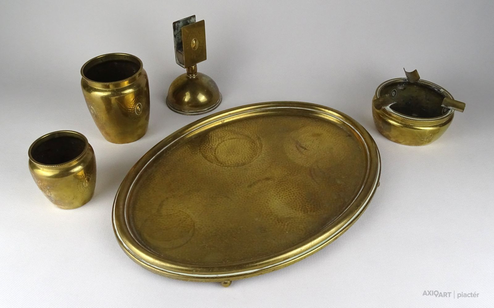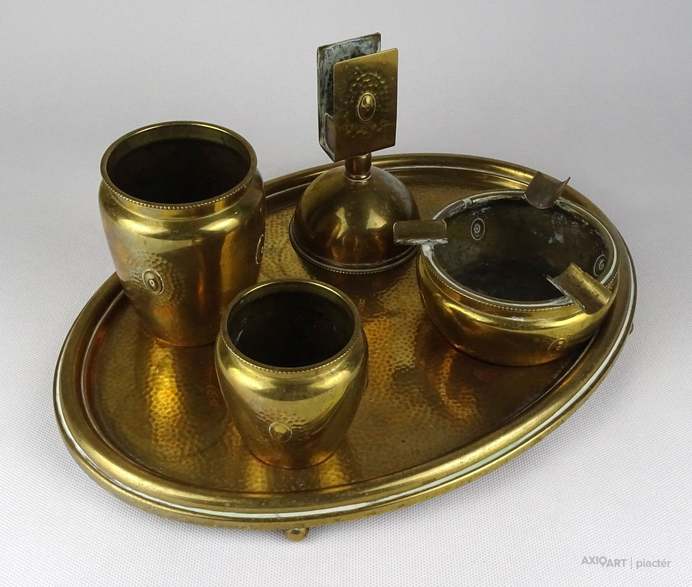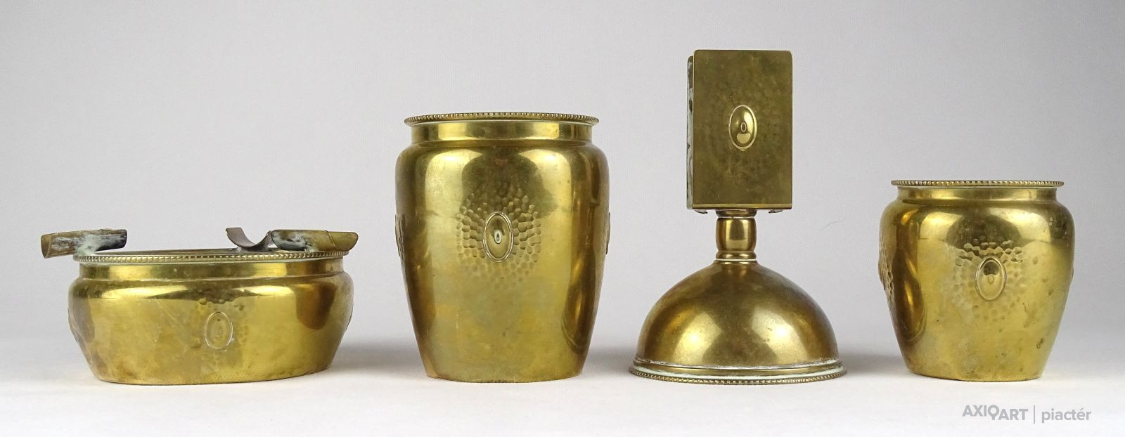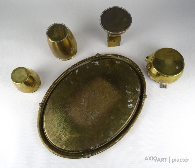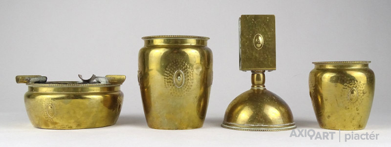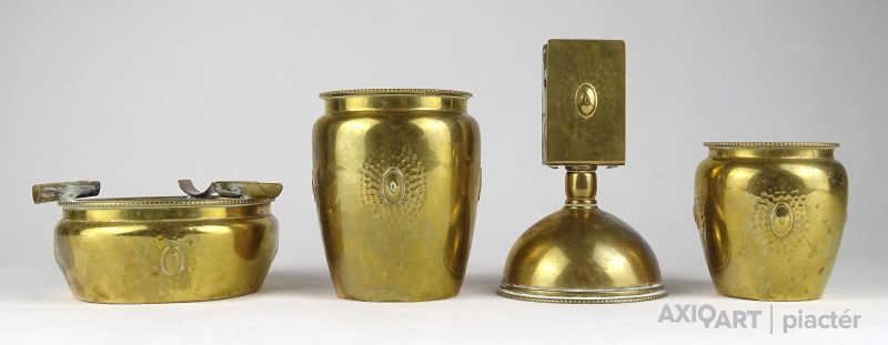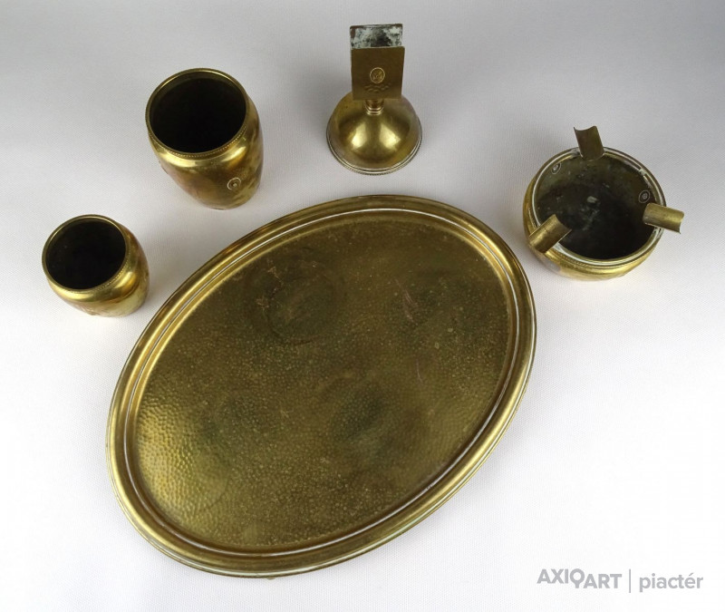 Régi jelzett szecessziós réz asztali dohányzó készlet az 1920-as évekből.
