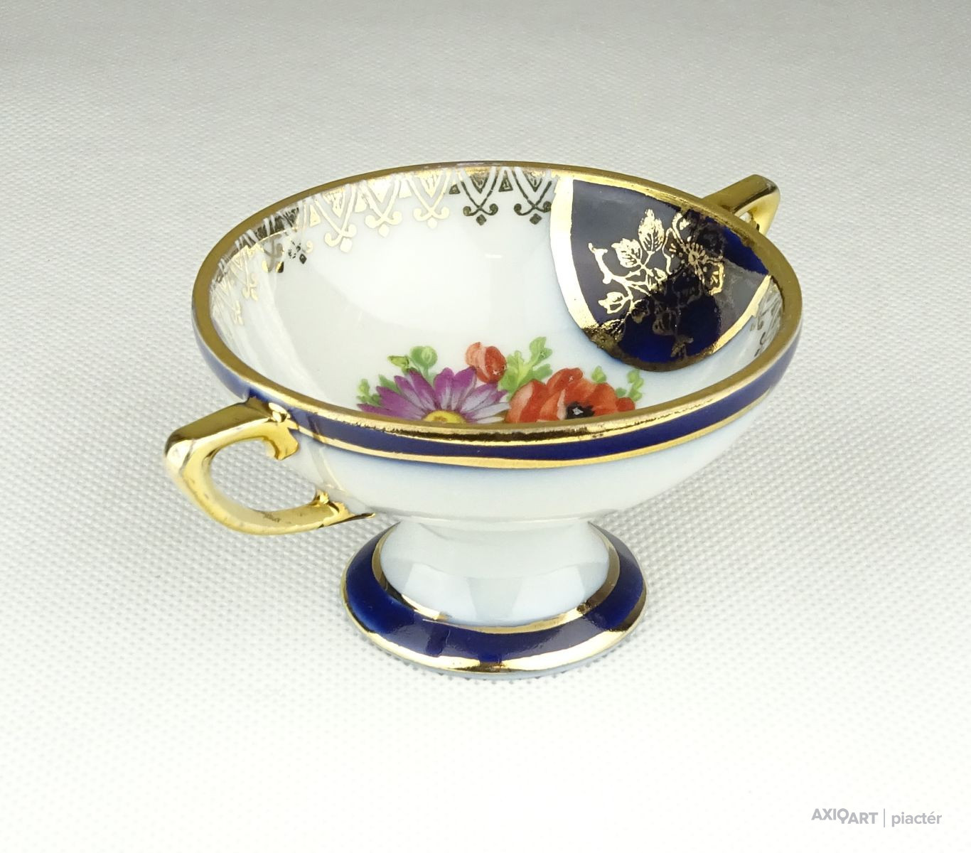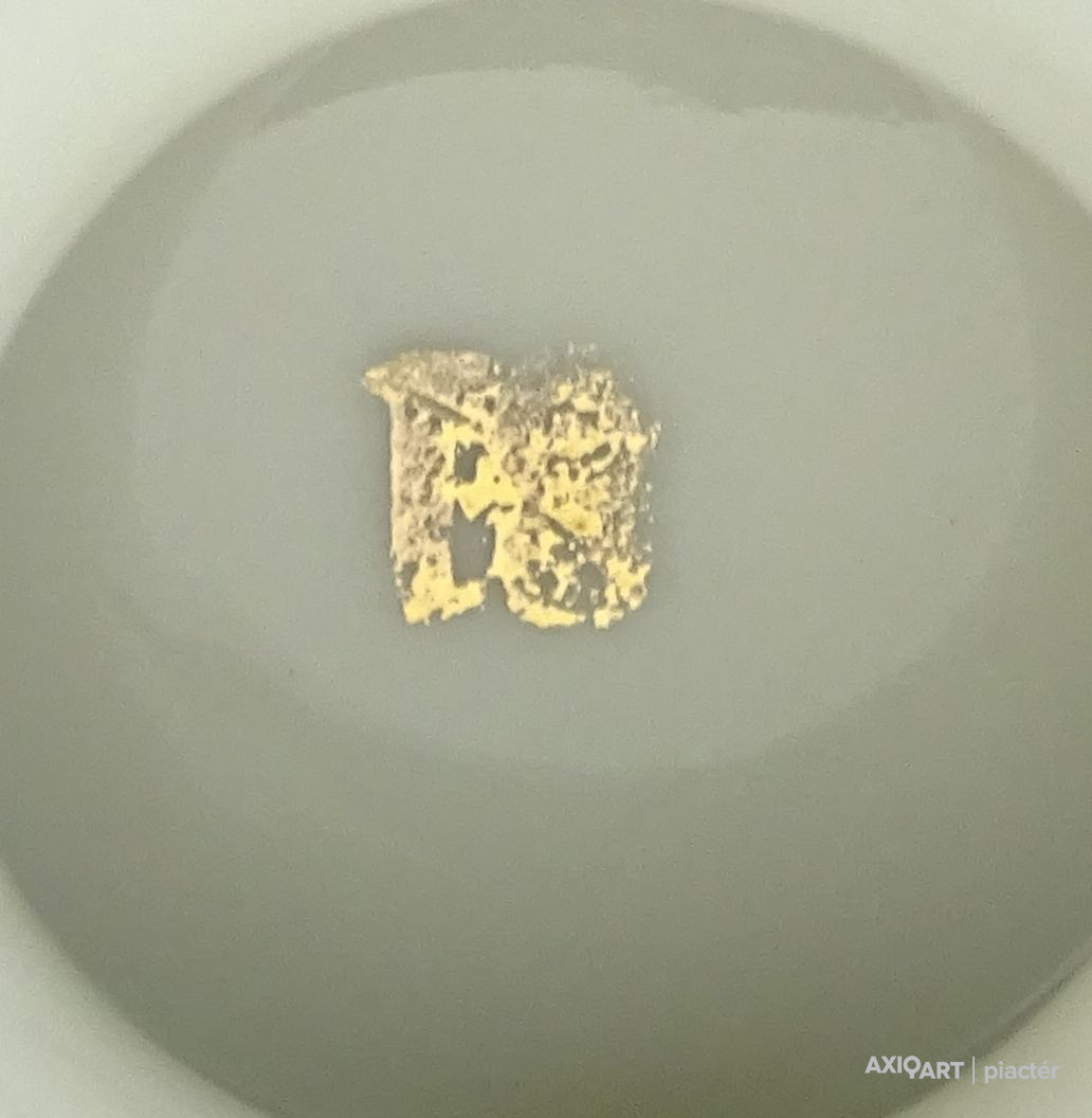 Régi jelzett,aranyozott porcelán vitrintárgy