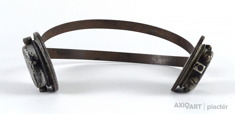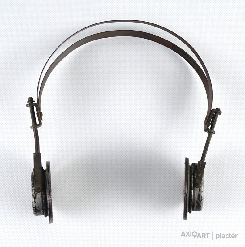 Régi, a második világháború éveiből való, vezeték nélküli fém pántos fejhallgató, füles.