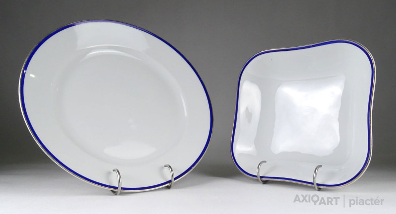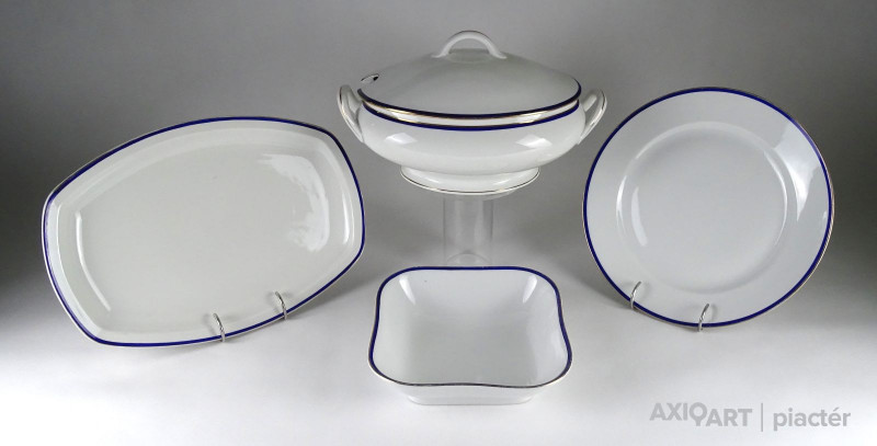 Szép állapotú Zsolnay porcelán étkészlet, kobaltkék és aranyozott széllel.