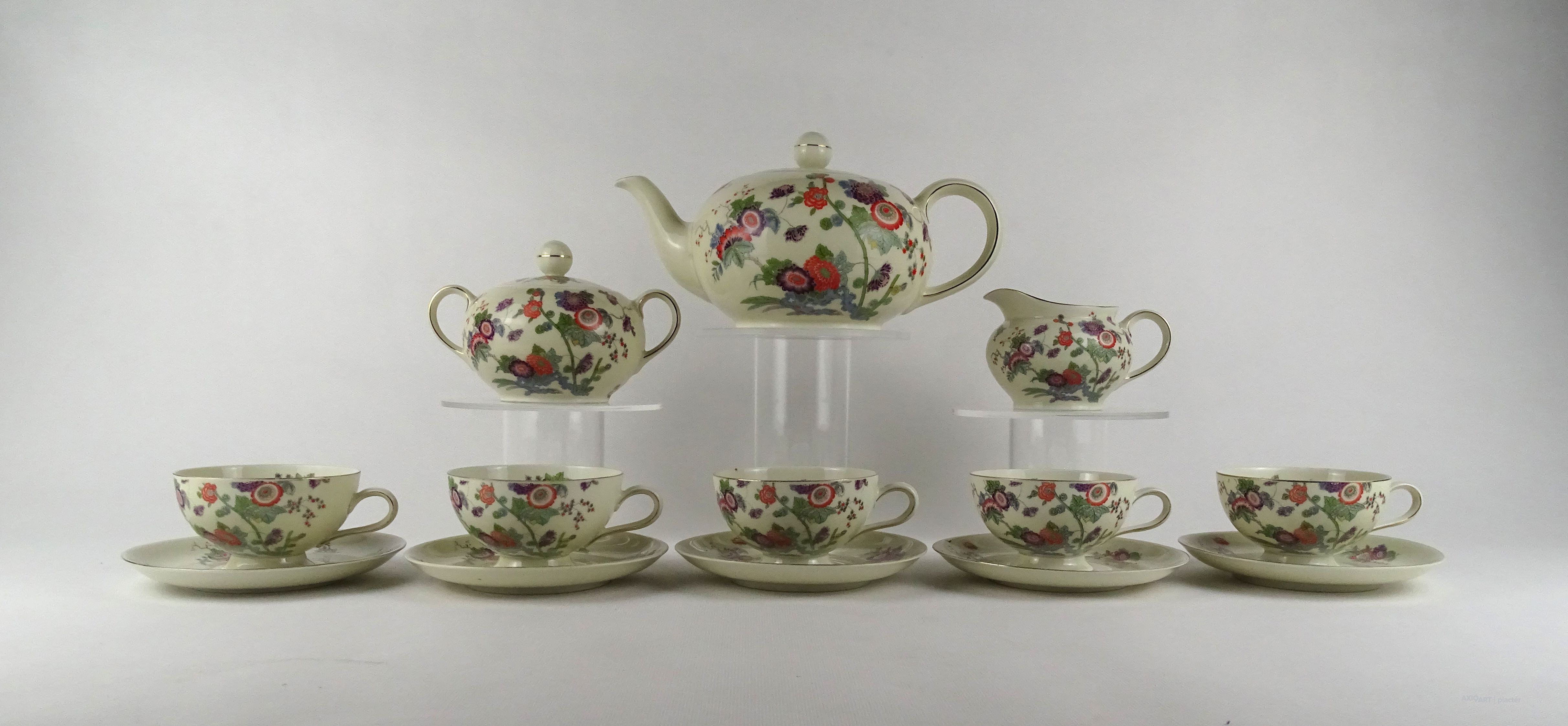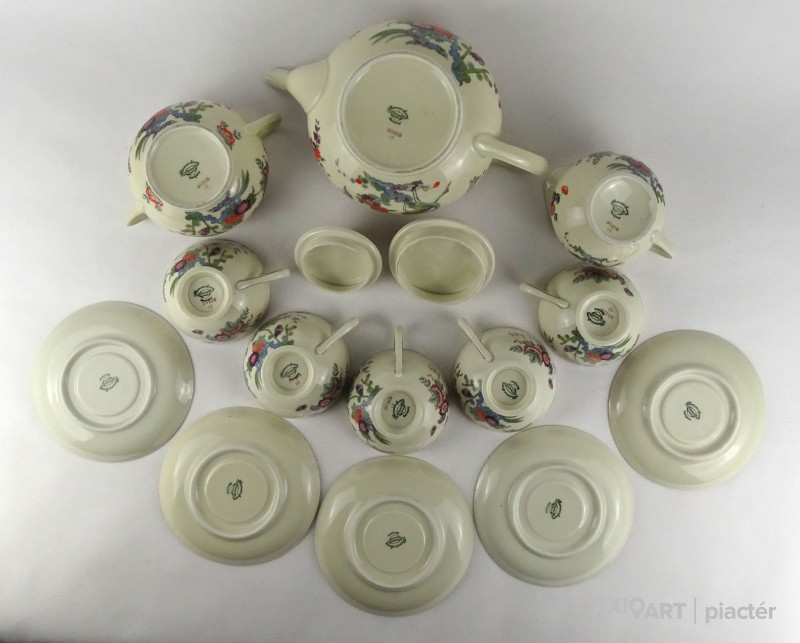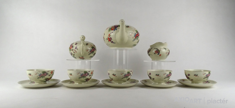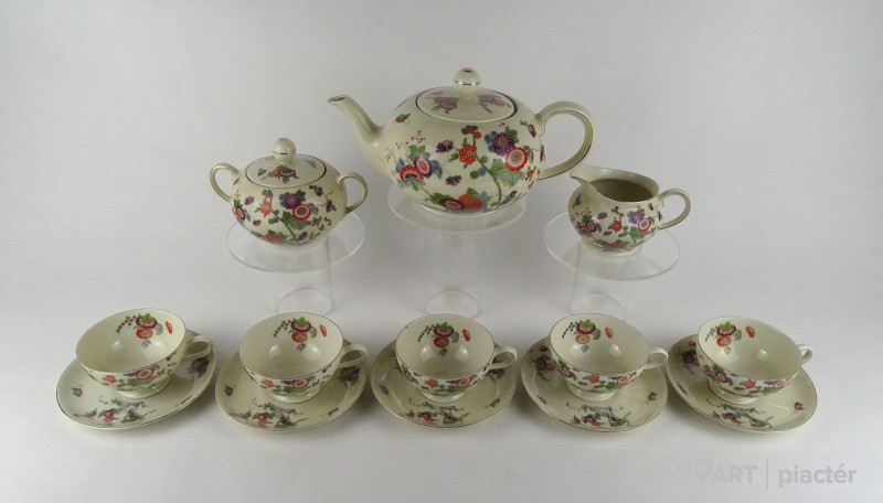 Régi kelet stílusú virágdíszes Thomas Ivory 5 személyes porcelán teás készlet