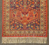 [1B051/UZ-N] 1920-as évekbeli, szép állapotú, összekötő szőnyeg. Piros, bordó, kék színű szép állapotú, nem kopott szőnyeg, hosszú rojtokkal. Szélesség: 91 cm Hosszúság: 158 cm