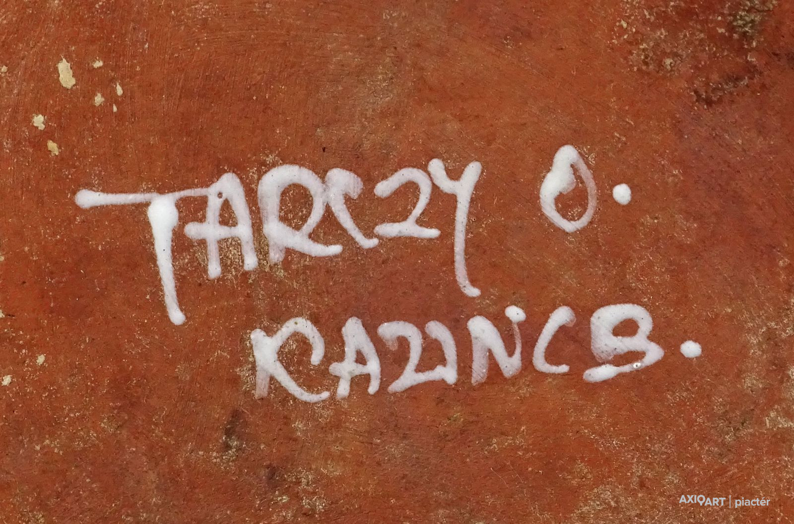 [1T107/Z029] 25% ÁRENGEDMÉNY MINDEN TERMÉKÜNKRE Dec. 14-ig Régi, szép állapotú kézzel festett három darab orientalista terrakotta kisplasztika, mellszobor. - 1 darab sárga ruhás, turbános szerecsen férfi büszt (20 x 12 x 23 cm) Vállán jelzés: IFJ. VASTAGH GY. - 1 darab kék ruhás, turbános szerecsen férfi büszt (17.5 x 15 x 23.5 cm) Vállán repedés, lásd fotó. - 1 darab barna ruhás szerecsen férfi büszt (19 x 15 x 23.5 cm) Vállán pecsételt és kopottas jelzés: IFJ. VASTAGH GY. ALGIR 1898 Súly: 3.945 kg Vastagh György (szobrász) Vastagh György Született 1868. szeptember 18. Kolozsvár Elhunyt 1946. június 3. (77 évesen) Budapest Állampolgársága magyar Nemzetisége magyar Házastársa Benczúr Olga Gyermekei Vastagh Éva Vastagh László Szülei Vastagh György Foglalkozása szobrász Sírhelye Fiumei Úti Sírkert (37/1-1-32) A Wikimédia Commons tartalmaz Vastagh György témájú médiaállományokat. Sablon • Wikidata • Segítség Ifjabb alsó-torjai Vastagh György (Kolozsvár, 1868. szeptember 18. – Budapest, 1946. június 3.) magyar szobrászművész. Az erdélyi Háromszékről származó Vastagh művészcsalád különböző műfajokban alkotó tagjai három generáción keresztül, százhúsz éven át voltak jelen a 19-20. század magyar képzőművészetében.  Családja Alsó-torjai székely lófő eredetű családból származott. Ősei 1661 körül a tatárdúlást követő pestis elől menekülve Szegeden telepedtek le, az ottani anyakönyvekben először 1667-ben fordul elő nevük. Nagyapja Vastagh János szegedi hajósgazda, apja id. Vastagh György festőművész, édesanyja Schell Jozefin, bátyja Vastagh Béla jogász és Vastagh Géza festőművész, sógora Kenyeres Balázs orvosprofesszor. Ifjabb Vastagh György 1900-ban kötött házasságot Benczúr Gyula lányával, Benczúr Olga képző- és iparművésszel. Három gyermekük született. Lánya, Vastagh Éva és fia, Vastagh László szobrászművészek voltak, kisebbik fia, Pál (közlekedési mérnök) a második világháborúban halt meg.  Tanulmányai Első mestere a nála mindössze egy évtizeddel idősebb Zala György volt. 1889 és 1891 között Münchenben a Képzőművészeti Akadémián tanult, előbb rajzot Gabriel Hacklnál, majd mintázást Syrius Eberlénél. 1893-ban tanulmányúton járt Párizsban, ahol Emmanuel Fremiet és Alexandre Falguere  szobrászokkal állt kapcsolatban. 1898-ban  négy hónapot töltött Algériában és Tunéziában, állami ösztöndíjjal ott tevékenykedő bátyjához, Gézához csatlakozva. Itt mintázta arab és néger portréit, továbbá egy teveszobrot.  Művészi pályafutása Tevehajcsár, 1893. Ifj. Vastagh György műtermének részlete az Árpád szoborral Első nyilvánosan felállított munkája a Pápai honvédemlék (1889), az ihászi csatát idéző bronz reliefjével és oszlop tetején szétterjesztett szárnyú turulszobrával. Részt vett a Kolozsvár város által kiírt Mátyás király szoborpályázaton, melyet Fadrusz János nyert meg. A Millenniumi kiállításra ötven tenyészállatszobor készítésével bízta meg a Földművelési Minisztérium. Ezeket az állami ménesbirtokokon – Bábolna, Kisbér, Mezőhegyes, Fogaras – mintázta. Az 1900-as párizsi világkiállításra a minisztériumtól újabb megrendelést kapott, a legkiválóbb nagy- és kistenyésztők állatainak megmintázását. Szobrait aranyéremmel jutalmazták. 1902-ben avatták fel a Budavári Palota területén, a lovarda előtt felállított másfélszeres életnagyságú Csikós szobrát, egyik főművét. Talapzatát a palota építésze Hauszmann Alajos tervezte. A II. világháborúban megsérült szobor restaurálás után 1983-ban került jelenlegi helyére, a Magyar Nemzeti Galéria B épülete előtti Hunyadi-udvarra. Fél életnagyságú változatát Párizsban a világkiállításon aranyéremmel díjazták. A londoni British Museum is vásárolt állatszobraiból, ezek egy része ma a Londoni Természettudományi Múzeum (Natural History Museum) gyűjteményében található. 1901-ben kapott megbízást Bethlen Gábor szobrának elkészítésére, melyet 1903-ban a Köröndön állítottak fel, ma a Hősök terén a millenniumi emlékmű egyik alakja. Ez időszakban az Állatorvosi Főiskolán lóanatómiai tanulmányokat készített grafikában és plasztikában, ezeket Zimmermann Ágoston szemléltető tananyagként alkalmazta. Ekkor készültek anatómiai tanulmányai Kincsemről, ott őrzött csontváza alapján. A nemzetközi vadászati kiállításon (1910, Bécs) kutyaszobraival aratott sikert. Részt vett a budapesti Bazilika szobrászati díszítésében (1905), a budapesti Széchenyi gyógyfürdő kupolacsarnokának egyik tritónja (1909–1913) is az ő nevéhez fűződik. II. Rákóczi Ferenc lovas szobrát Szegeden, a Széchenyi téren állították fel 1912-ben. Árpád fejedelem lovas szobrának felállítása Munkácson az I. világháború miatt meghiúsult, kisplasztikai változata a Magyar Mezőgazdasági Múzeumban látható. A múzeum felkérésére mintázta a Négyesfogat szoborcsoportot Dőry Vilmosné leperdi birtokán 1912-ben, a Négyökrös szántást Mezőhegyesen 1913-ban, továbbá szintén a Dőry-birtokon, a Mezőgazdasági kiállításon díjnyertes Cepedli tehén szobrát 1925-ben. Ez évben készült Pázmány Péter emlékszobra a nevét viselő tudományegyetem számára (központi épület), ma Piliscsabán a katolikus egyetemen található. Lourdes-i Mária szoborpályázaton nyertes alkotása (1925) a Gellért-hegyi Sziklatemplomban állt (eltűnt). A létrehozandó kairói Mezőgazdasági Múzeum számára 1931-32-ben közel 50 egyiptomi juh-, szarvasmarha- és lószobrot mintázott fiával, Lászlóval együtt. Görgey Artúr 