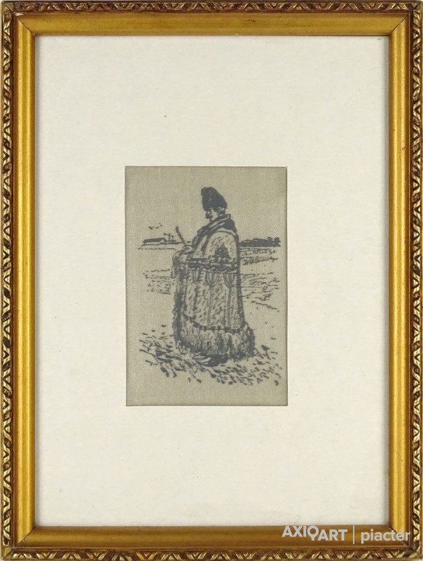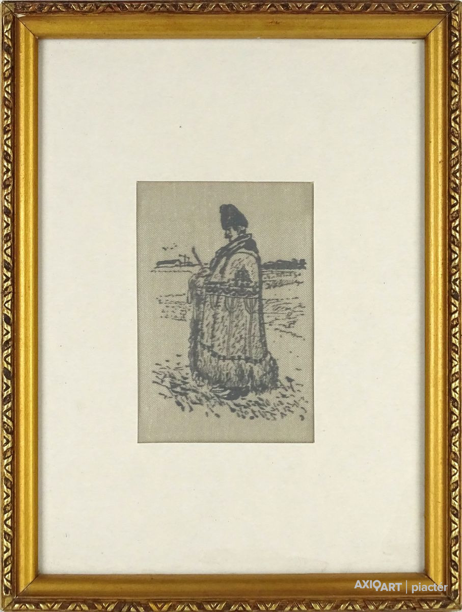 Régi aranyozott keretben, üveglap mögött található, kézzel festett, selyemkép. Hortobágyi juhász. Akasztási lehetőséggel rendelkezik.