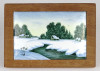 Régi keretezett kisméretű kézzel festett téli táj zománckép 8.5 x 12 cm