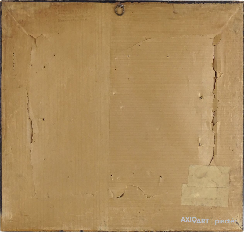 [1Y029/Z018] Olaj farost festmény, üveglap mögött, hibátlan képcsarnokos keretben. Hátoldalán Képcsarnok Vállalat papír címkéje: A művész neve: SCHÉNER MIHÁLY A kép címe: TÁJ Magasság: 66.5 cm Szélesség: 86 cm Súly: 6.54 kg Schéner Mihály festő, grafikus, szobrász, keramikus, bábtervező Medgyesegyháza, 1923-01-9 Elhalálozott: Budapest, 2009. május 11. Honlap: http://www.kormendigaleria.hu/kiadvany.html 1942-1947: Magyar Képzőművészeti Főiskola, tanára: Rudnay Gyula. 1978: Munkácsy-díj; 1984: érdemes művész; 1989: kiváló művész; 1995: Kossuth-díj. 1992-től a Magyar Művészeti Akadémia, 1993-tól a Széchenyi Irodalmi és Művészeti Akadémia tagja. 1956-ig tanított. 1982: Nagyatádi Faszobrász Alkotótelep, 1985: Nemzetközi Acélszobrász Alkotótelep, Dunaújváros. A stílusában felismerhető, mégis sokféle műtárgyat létrehozó ~ gazdag, állandóan alakuló életműve a folyton változó világban helyét kereső, az alkotói szabadságot megvalósító XX. századi képzőművész példázata lehetne. Magát expresszív-szürrealista alkotónak nevezi. Egyaránt dolgozik festékkel, textillel, fával, fémmel. Rajzol, szerkeszt, farag, épít, gyúr, varr és ragaszt, felhasználja a mézesbábok öntőformáit. Festő, rajzoló, textilszobor- és bábkészítő, fazekas, asztalos, esztergályos. Háromlépcsős folyamatban gondolkozik: rajzban tervez, majd fest, szobrot készít, “formába önt”, mindig a végső plasztikai megoldást keresi. Ami állandó és mégis játékosan változékony megjelenésű Schéner művészetében, az a gyermekkori emlékek által meghatározott népi mesterségek iránti tiszteletet kifejező motívumkincs, a tárgyi folklór formakészlete, amely már-már kézjegyként ismétlődik munkáin. Mitologikussá nőtt képzelete új lényeket teremt, pl: a Pigulát, amely disznótestű, emberfejű teremtmény. Schéner festményein a szürrealista motívumokat konstruktív szerkezetbe rendezi, a geometriát és az organikus természeti motívumokat egyaránt beépíti műveibe. A népi, népművészeti formakincsből merített lovas huszárok, betyárok, szegénylegények cifra szűr mentéje, piros csákója, fekete csizmája, az önálló életet élő zsinórdíszek és mézeskalács bábok, a kiskocsik a gyermekkori vásárok, búcsúk színes forgatagába vezet. A primér motívumokat aztán felváltják a vastagon felhordott felületbe karcolt jelek, vonalhálózatok, amelyek a játszó gyermek homokba rajzolt ábráit, a pásztorember fába vésett üzeneteit, az ősember barlang falába rótt mágikus jeleneteit idézik meg. A művész pillanatnyi érdeklődésének megfelelően a színek búvópatakként tűnnek el és jelennek meg ismét. A 60-as években leginkább a formákkal való játék érdekelte, a festmények felülete egyre gazdagodott: a táblaképek felületén applikációk jelentek meg, vagy lemállasztott rétegek hagyták maguk után hiányukat, motívumok nélküli ősformák, archetipikus képzetek bukkantak fel művészetében. A véletlenszerűnek látszó rétegekkel való játék azonban tudatos komponálás eredménye, amely később nyilvánvaló ritmusnak és formai szerkesztettségnek adja át a helyét, mint a Törvénytáblák c. sorozaton. A különböző művészi kifejezési formák egymásra termékenyítő hatással vannak, át- meg áthatják egymást. Textilszobrai, amelyekkel új műfajt teremtett, ugyanazzal az automatikus, expresszív-szürrealista módszerrel készülnek, mint festményei. A hagyományosan a népművészetben alkalmazott anyag, a filc lehetőséget ad a népi formakincs felelevenítésére, amely azonban a művész különös szürrealista átiratában jelenik meg. A szívekkel kivarrt, zsinórdíszes Posztókotlós c. művén mézesbábok lógnak, hátán huszárok lovagolnak. Egész sor textilből készült kéz-plasztikát alkot, amelyeket az ujjakra rávarrt díszekkel öltöztet, személyesít meg. A színes-különös világból aztán ~ újra puritán képi és formai rendbe juttatja el a nézőt, majd nemsokára tépett, gyűrt, vágott, csorgatott, repedezni hagyott szenvedélyesen vonagló képi felületeket hagy hátra. Schéner készített apró gyermekjátékokat, térstruktúra-tereket, mászókákat is. A magyar népi formák mellett szürreális játékaiban gyakran alkalmaz görög mitológiai alakokat, “elkentaurosodott” lovakat, Gorgó-fejeket, sellőket, hárpiákat, Pán-ábrázolásokat. Schéner nemcsak saját művészetéről publikál, hanem művésztársairól is számos írása jelenik meg, elsősorban az Új Auróra c. folyóiratban, amelynek egy ideig főmunkatársa volt. Irodalom kiállítása, Magyar Építőművészet, 1962/4. Húsz év után, Művészet, 1965/4. BOZÓKY M.: ~, Tiszatáj, 1968/5. PERNECZKY G.: Nincs uborkaszezon, Élet és Irodalom, 1969. augusztus 8. BARÁNSZKY-JÓB L.: ~, Művészet, 1969/9. LÁSZLÓ GY.: ~ kaposvári kiállítása, Jelenkor, 1969/4. MAJOR M.: Pásztorok, betyárok, huszárok - kezek, Tükör, 1970. szeptember 15. FRANK J.: Bemutatjuk ~t, Élet és Irodalom, 1972. május 6. ról kiállítása ürügyén, Képzőművészeti Almanach, Budapest, 1972 Sötétkék kokasok, Élet és Irodalom, 1973. szeptember 9. MAJOR M.: ~ játékai, Élet és Irodalom, 1974. július 27. BARTA J.: Egy különös művész, Alföld, 1974/6. VADAS J.: Szárnykészítők, Élet és Irodalom, 1975. október 4. JUHÁSZ F.: A halál ellen játszani, Élet és Irodalom, 1975. május 17. PAP G.: Kincsek és műkincsek, Művészet, 1975/6. P. SZŰCS J.: Az utak kettéválnak, Művészet, 1978/3. Békési művészet, Művészet, 1978/7. SZAMOSI F.: ~ [kismonográfia], Budapest, 1978 VADAS J.: Játék a játékkal, Élet és Irodalom, 1979. augusztus 18. NÉMETH L.: ~ műveiről, Művészet, 1979/4. MIKLÓS P.: Mit akar ez a múzeum?, Művésze