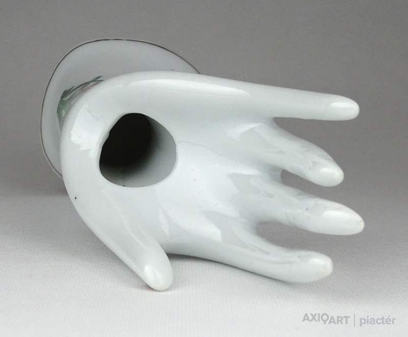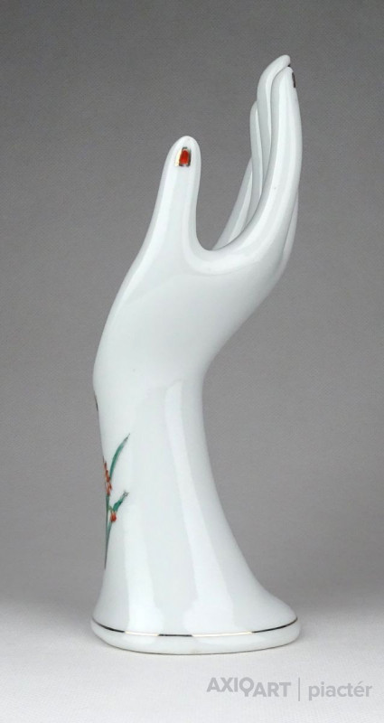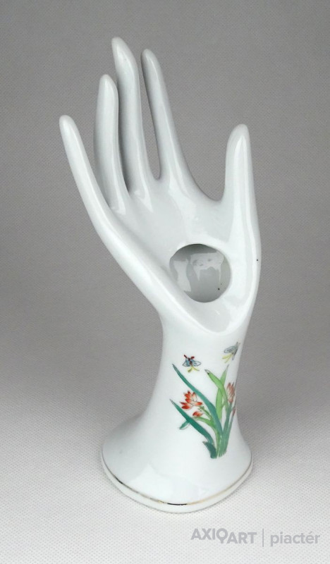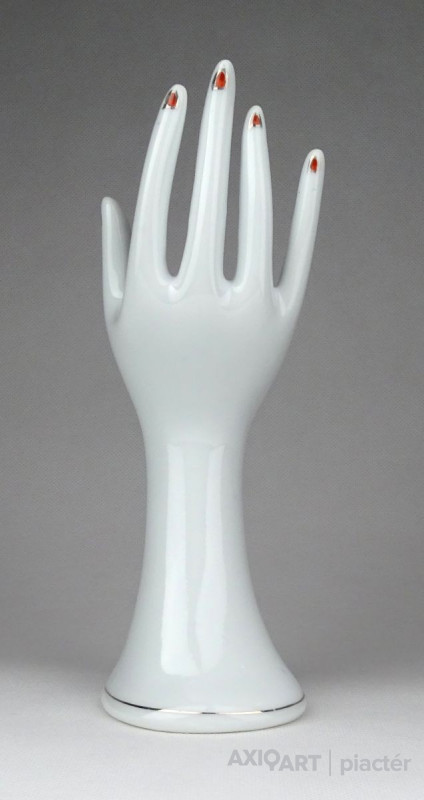 [1E996/X207] Régi, hibátlan állapotú, jelzett porcelán kéz alakú gyűrűtartó, ékszertartó. Alján jelzés pirossal: MADE IN CHINA Magasság: 19.7 cm Szélesség: 7 cm Súly: 0.24 kg