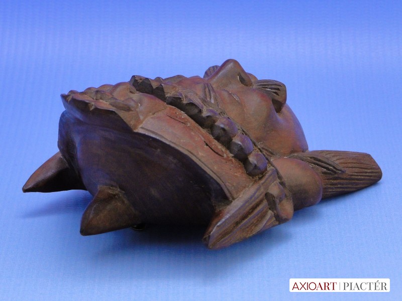 [0B378/X051] Egy fából készült régi kínai faragott falimaszk. Szélesség: 8 cm Hosszúság: 11 cm Súly: 0.116 kg