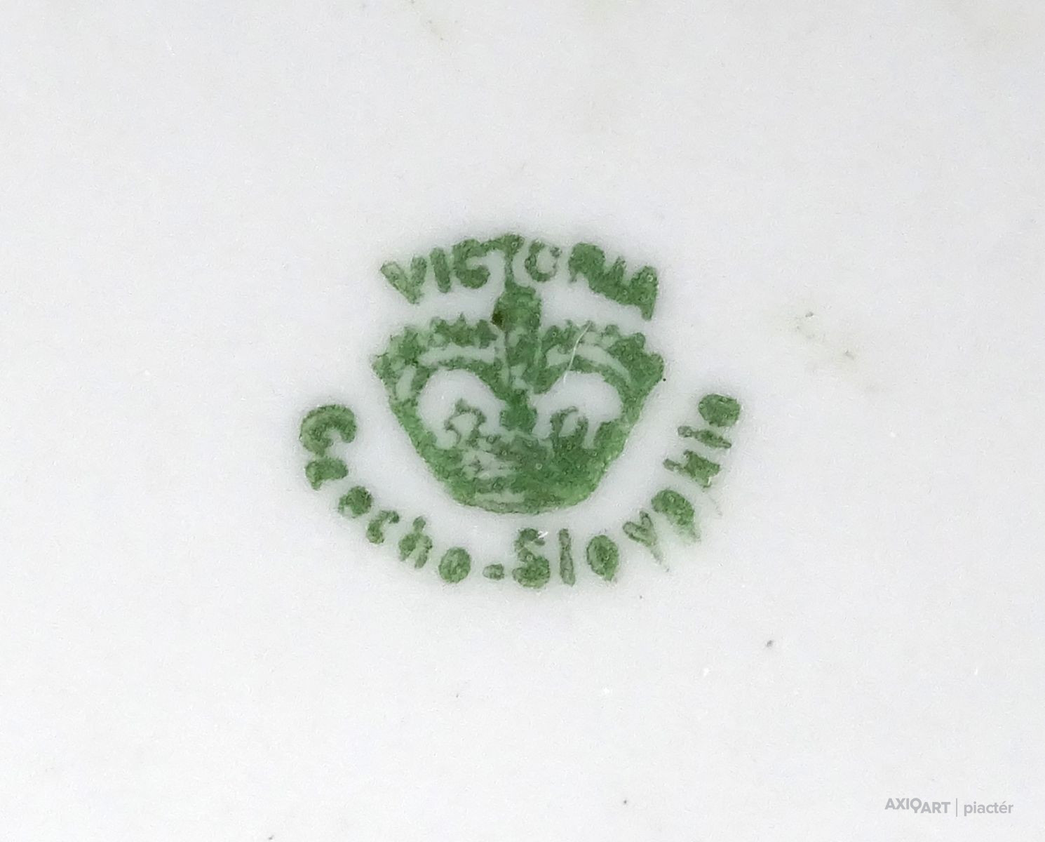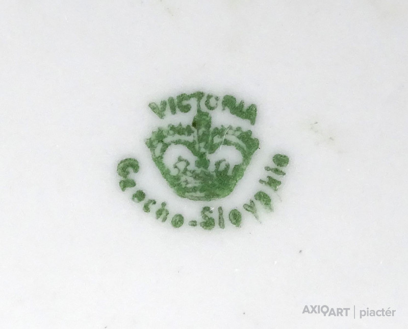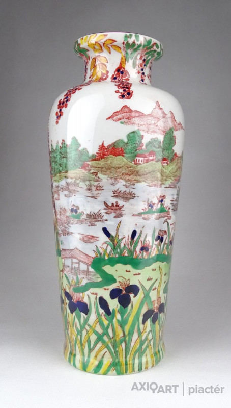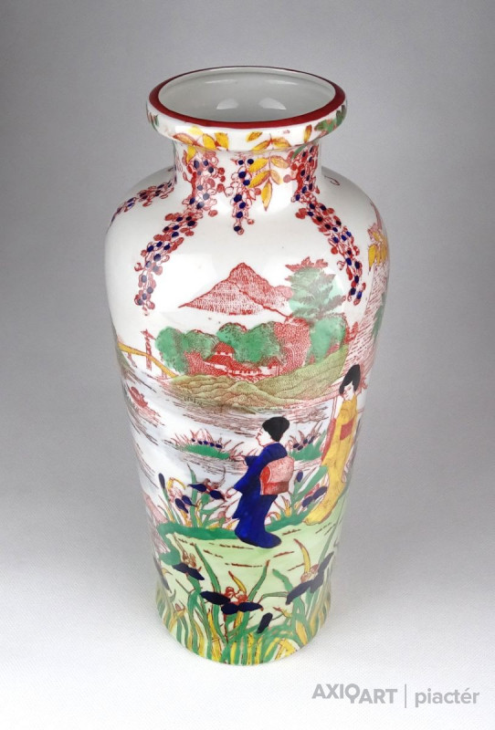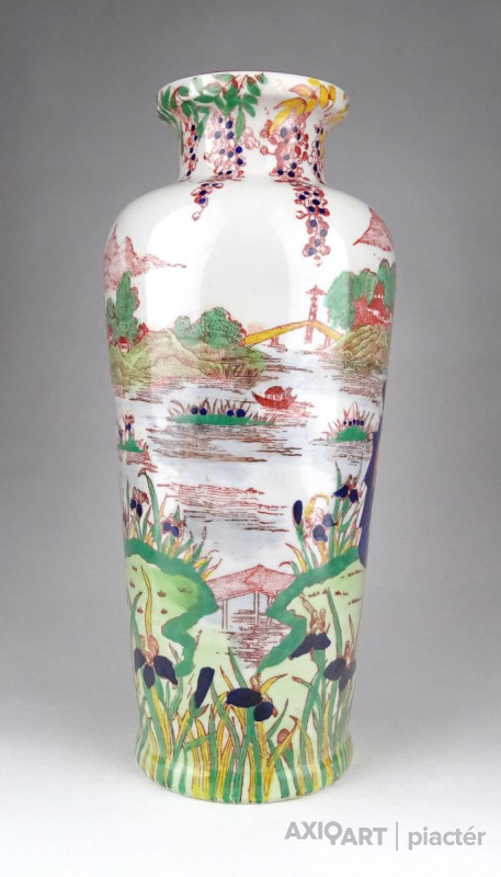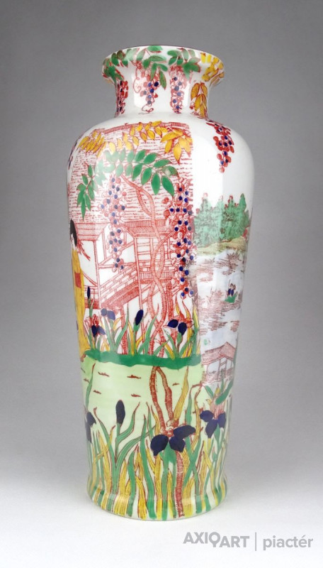 [1A613/BX-2] Régi, nagyméretű, hibátlan állapotú, jelzett kínai mintás, gazdagon díszített porcelán váza, díszváza. Alján zöld koronás márkajelzés: VICTORIA CZECHO-SLOVAKIA Magasság: 32.5 cm Szélesség: 13.5 cm Súly: 1.07 kg