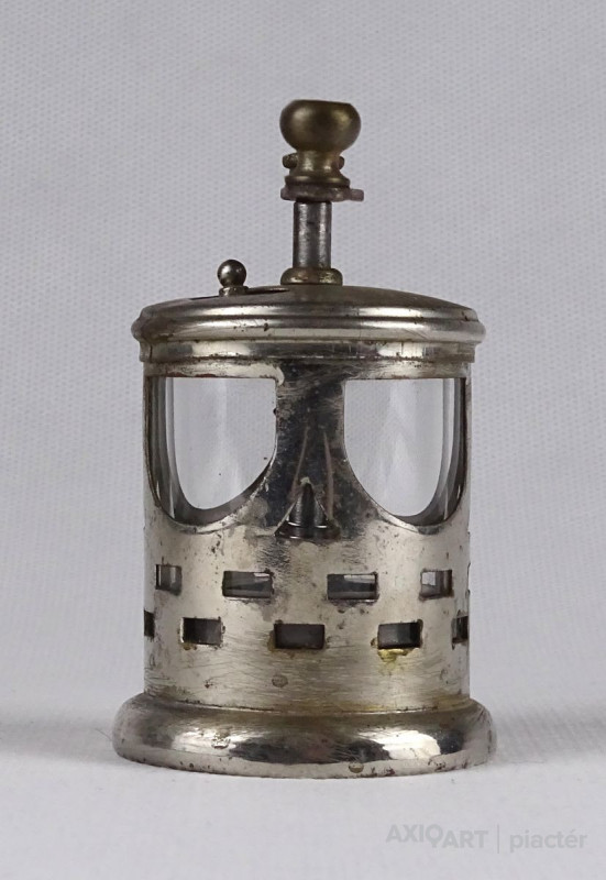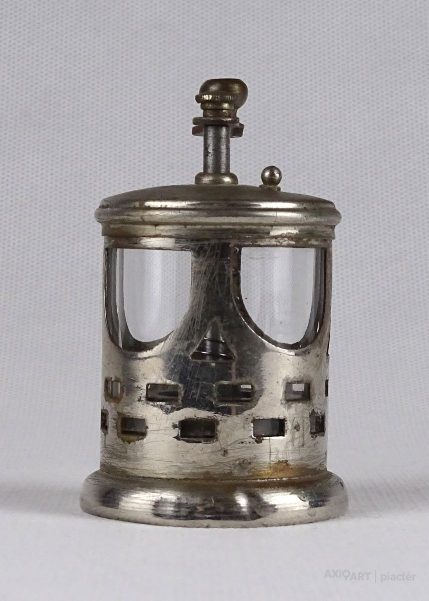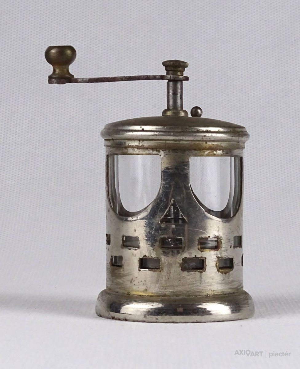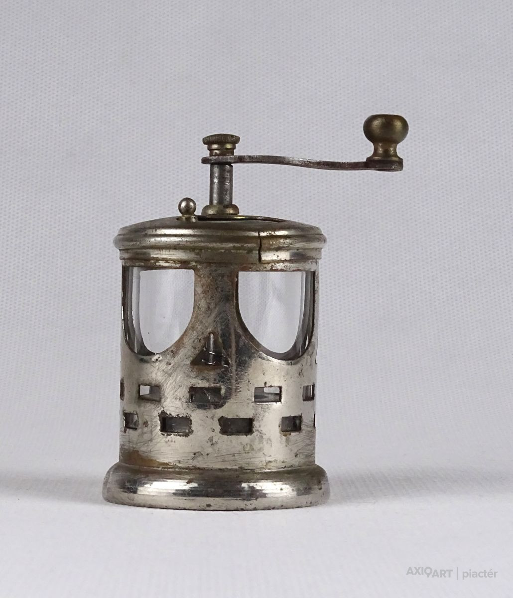 Régi kisméretű art deco üvegbetétes borsdaráló borsörlő 8 cm