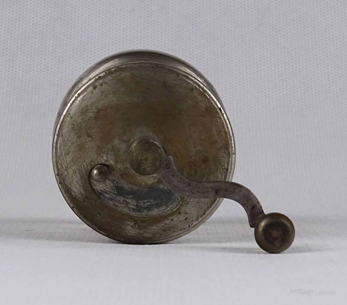 Hibátlan állapotú, kis méretű üvegbetétes art deco fém daráló. Ma is jól használható darab.
