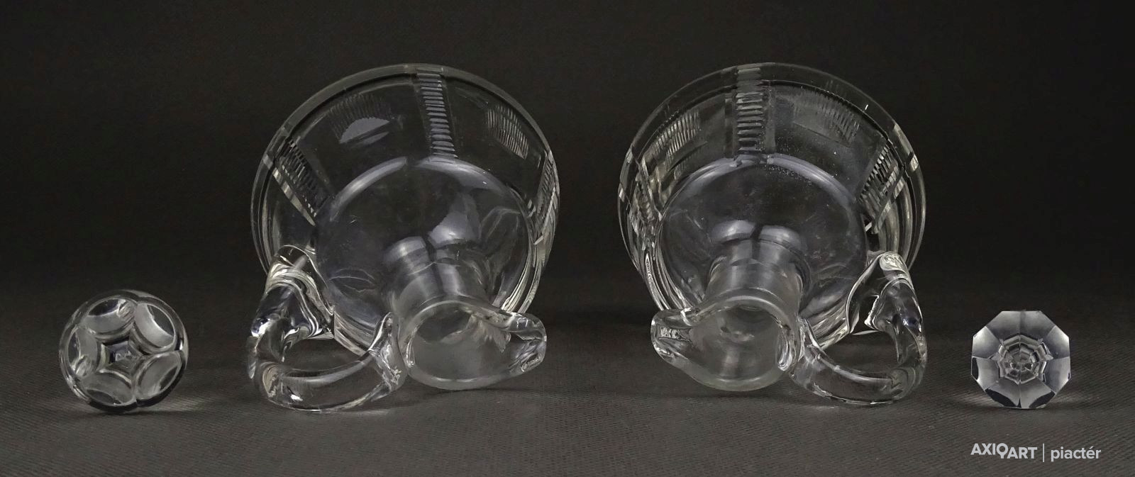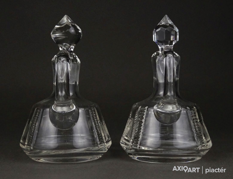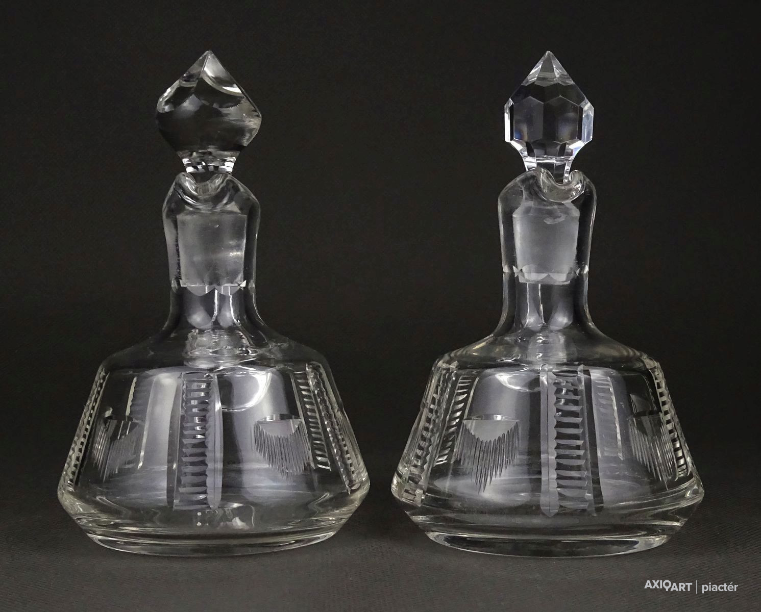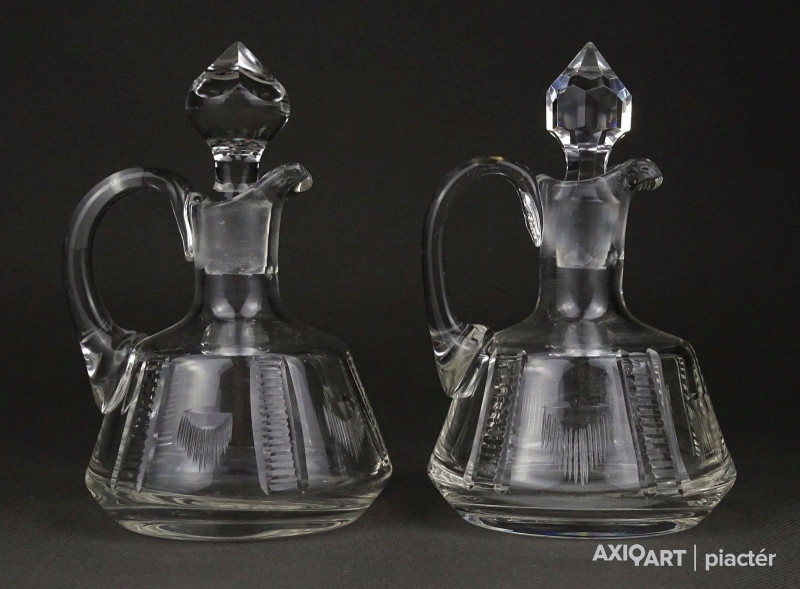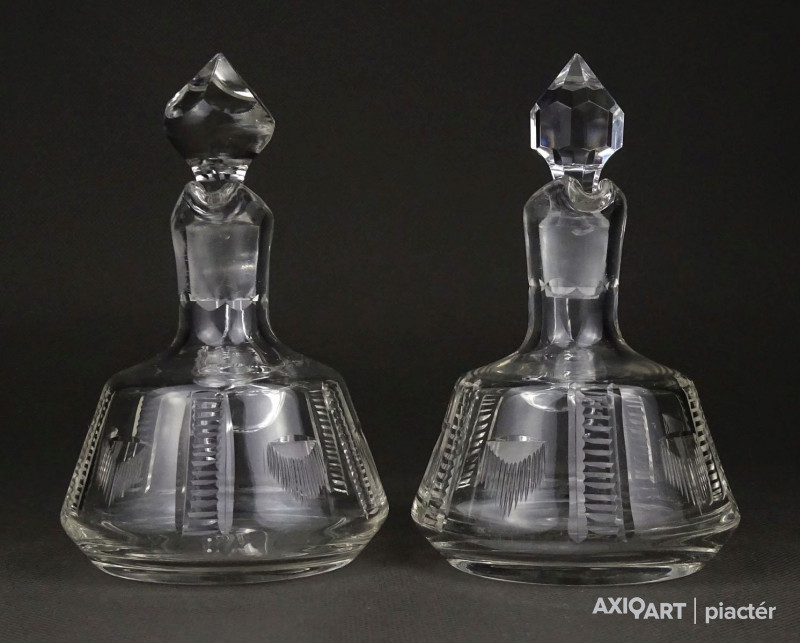 [1Q986/X201] Szép állapotú csiszolatokkal szépen díszített kettő darab dugós üveg. Magasság: 13 cm Szélesség: 8 cm Súly: 0.49 kg