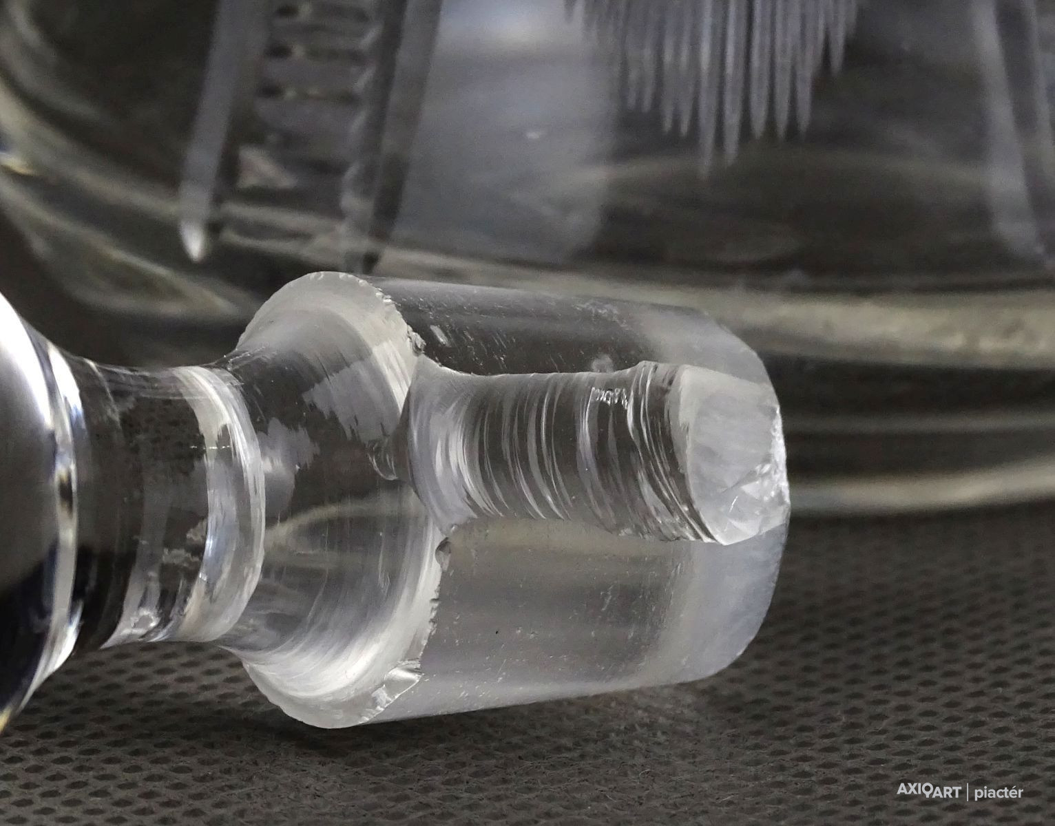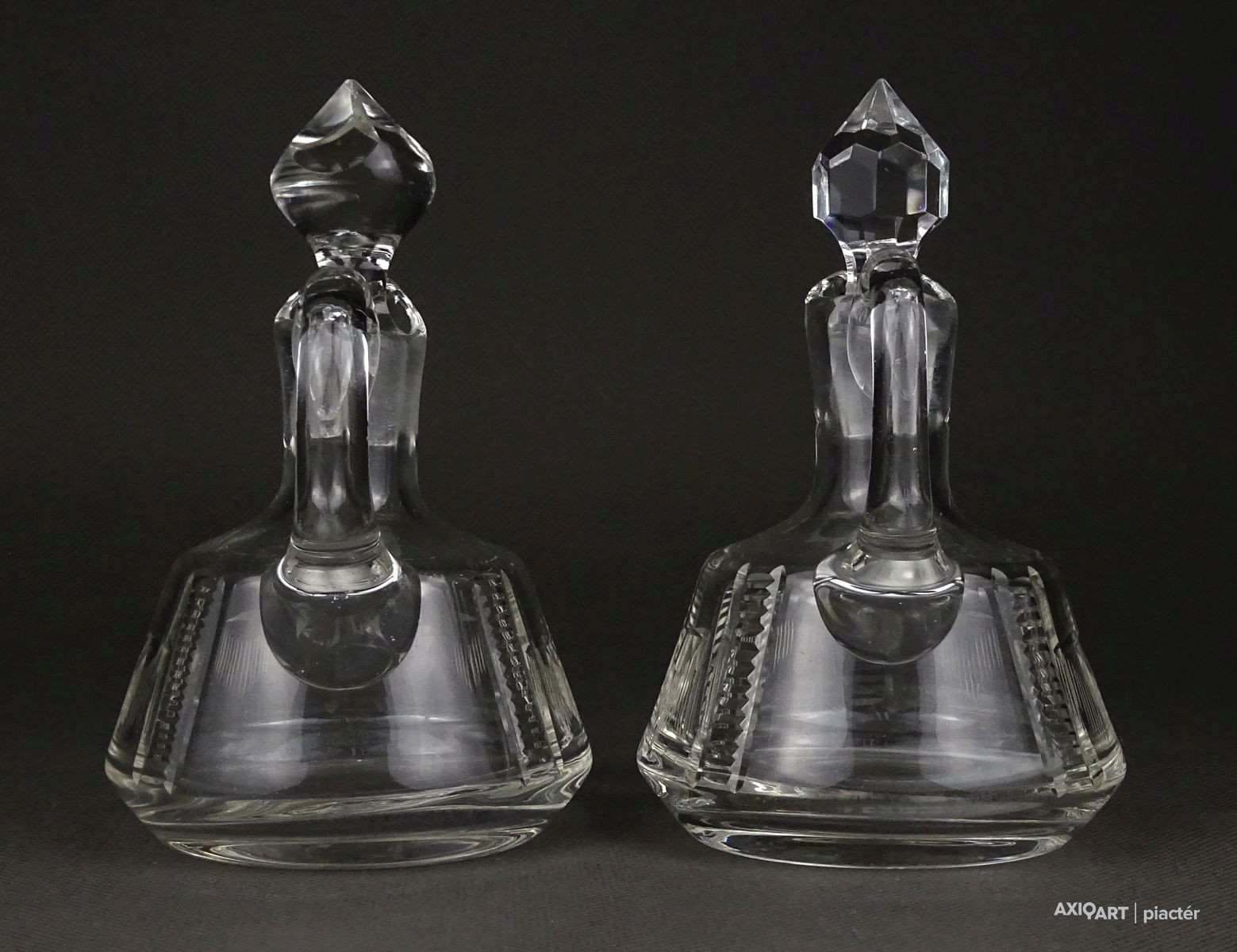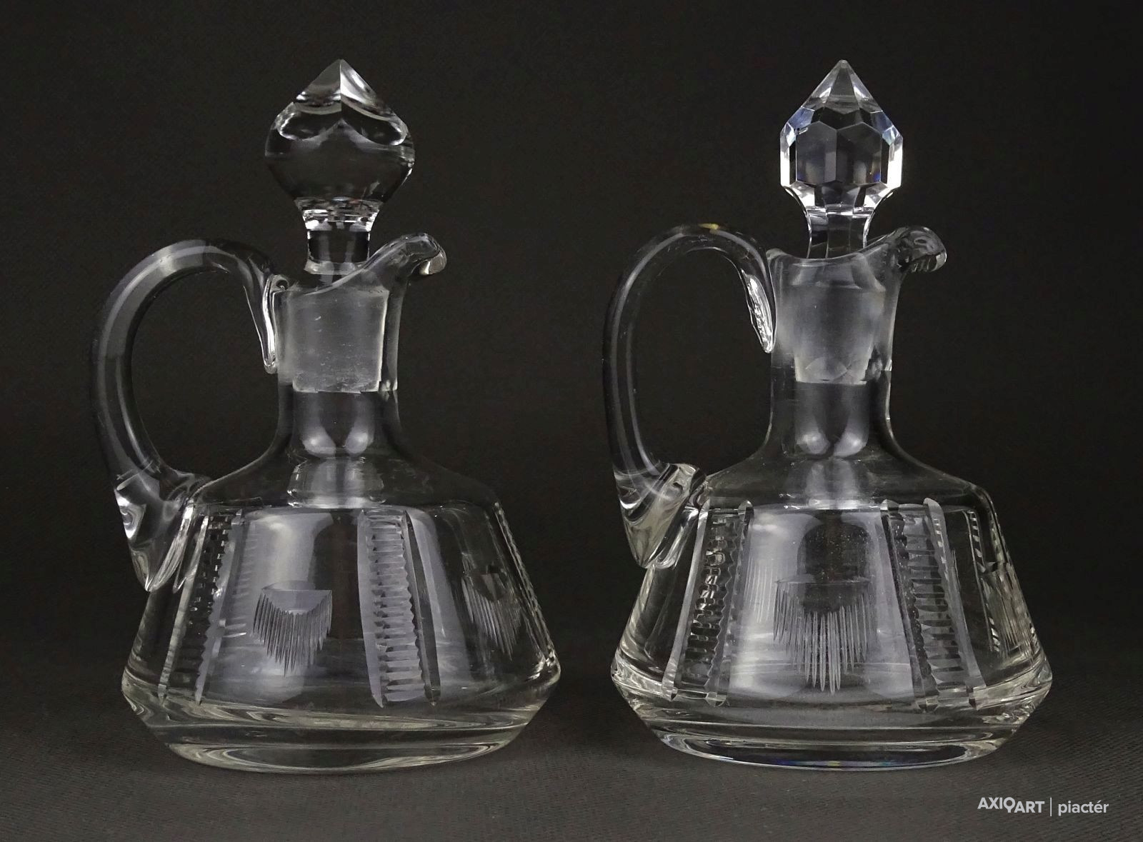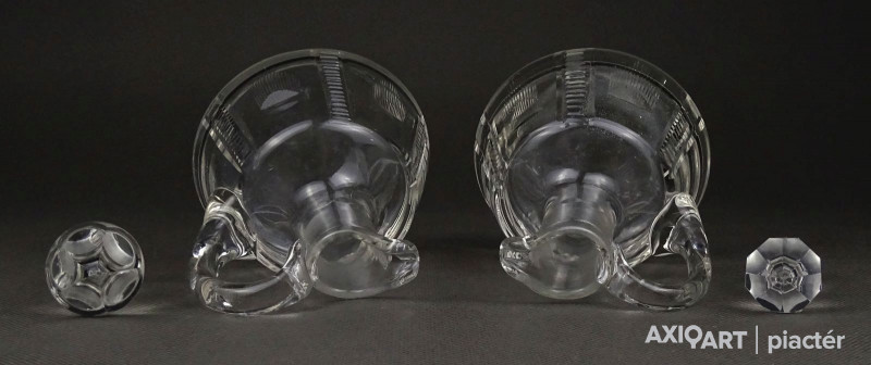 [1Q986/X201] Szép állapotú csiszolatokkal szépen díszített kettő darab dugós üveg. Magasság: 13 cm Szélesség: 8 cm Súly: 0.49 kg