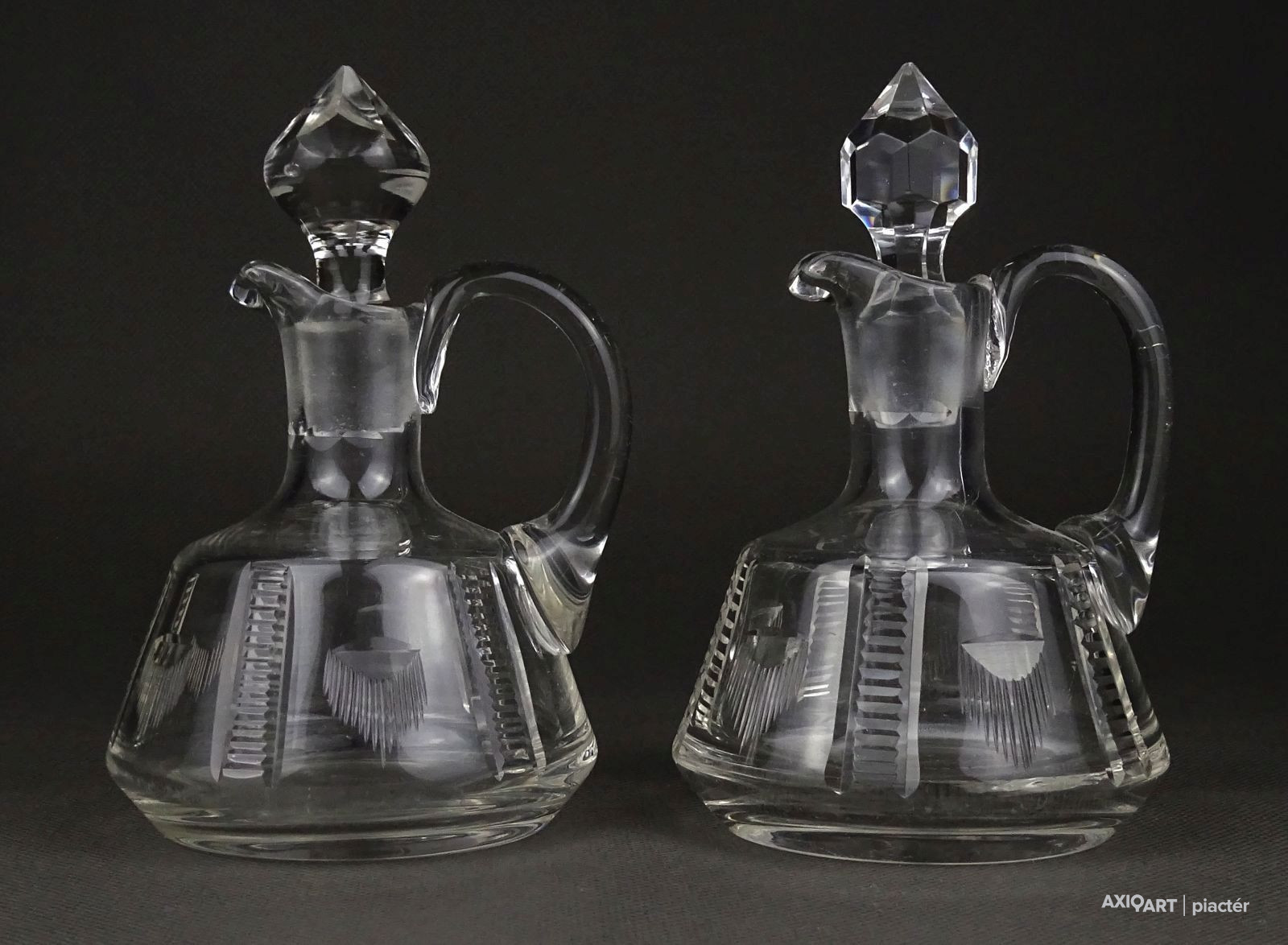 Régi kisméretű csiszolt olajos ecetes üveg kiöntő pár