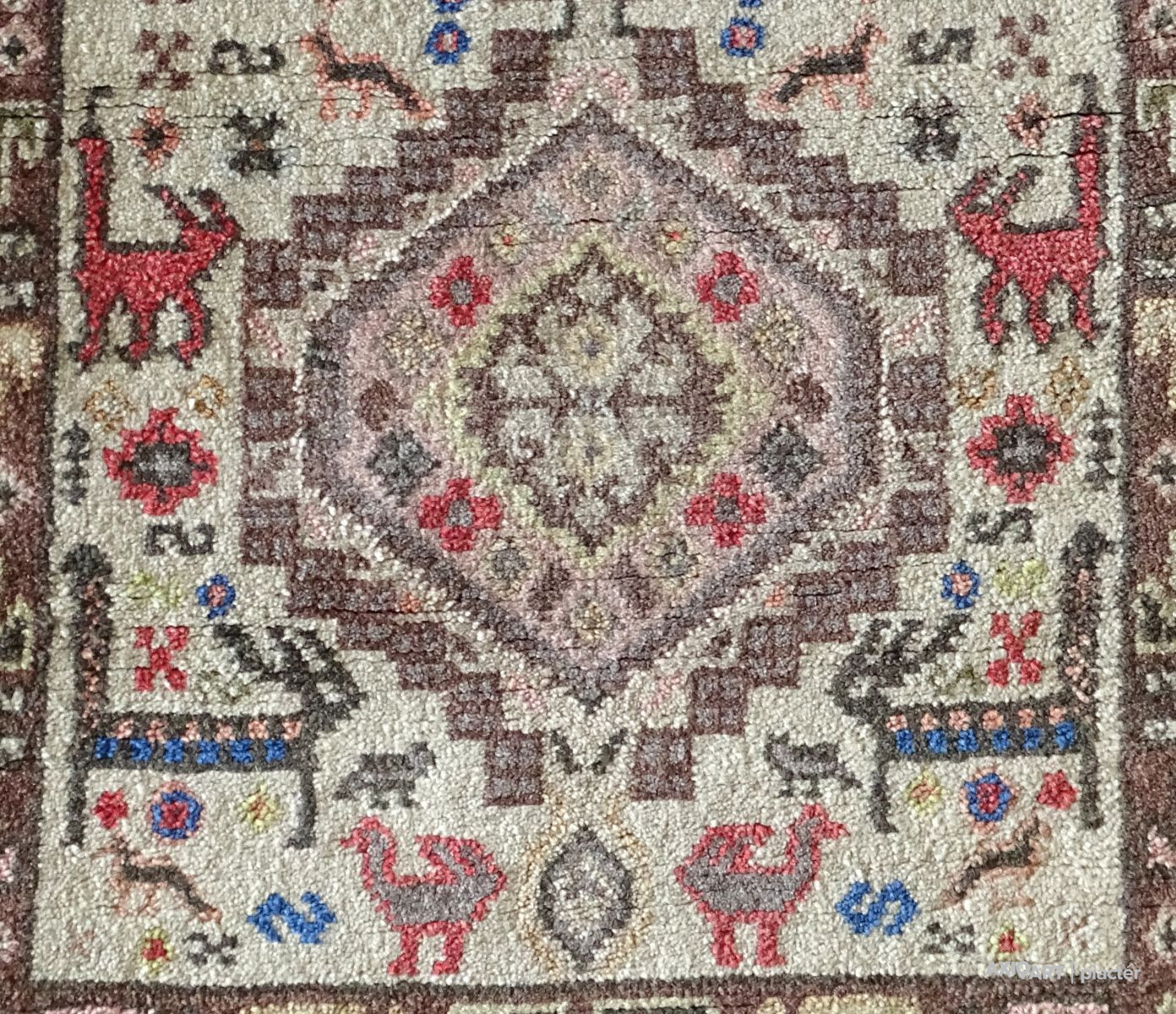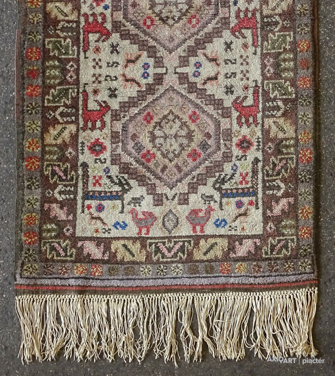 Régi kisméretű kaukázusi állatmintás imaszőnyeg 80 x 154 cm