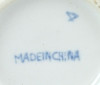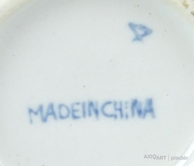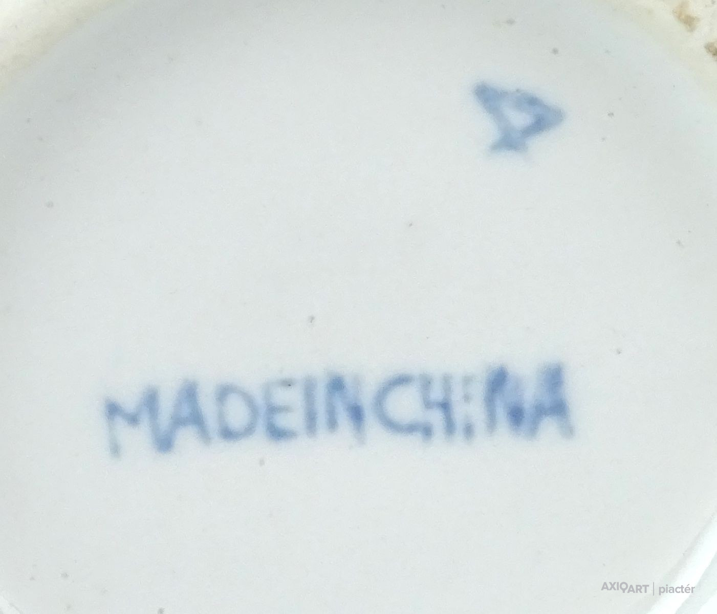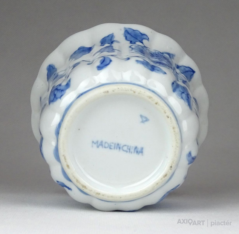 [1G319/X208] Régi kis méretű jelzett fehér alapon kék hajnalka mintás gerezdes porcelán kaspó. Alján kék jelzés: MADE IN CHINA Magasság: 6.5 cm Szélesség: 10 cm Súly: 0.185 kg