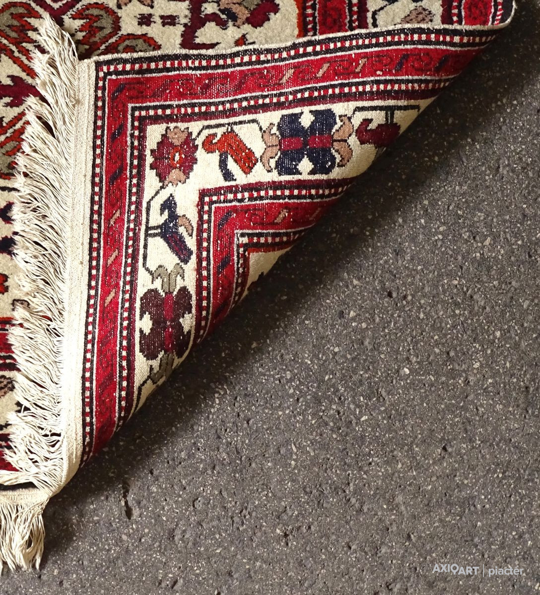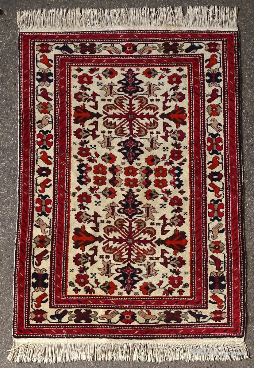 Régi kisméretű kézi szövésű virágos szőnyeg 90 x 150 cm
