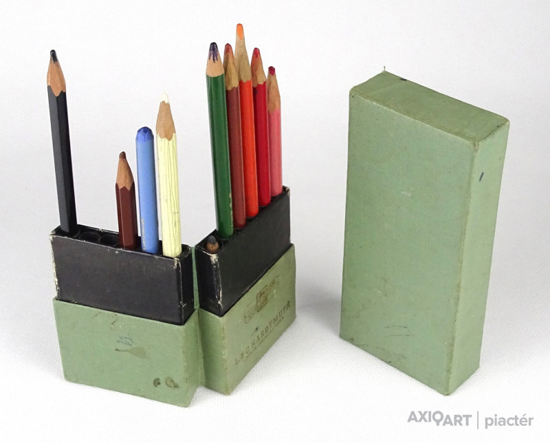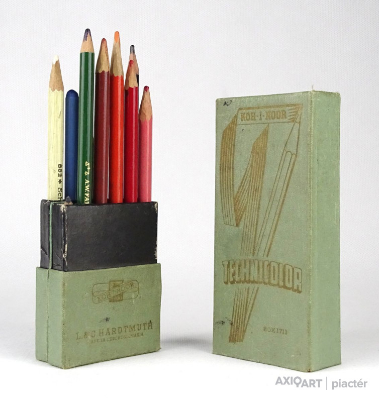 [1O468/X109] Használat, papír dobozban található 10 darabos vegyes színes ceruza készlet, fotó szerinti állapotban. A benne lévő ceruzák: - SCHULER JÓZSEF R.T. BUDAPEST - A.W. FABER CASTELL - PRINCE EYE CRAYON - L&C. HARDTMUTH KOH-I-NOOR TECHNICOLOR - BOHEMIA WORKS PROGRESSO A dobozon feliratok: KOH-I-NOOR PENCIL MANUFACTORY TECHNICOLOR BOX 1711 L&C. HARDTMUTH CZECHOSLOVAKIA Súly: 0.12 kg