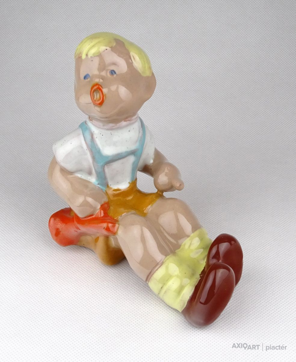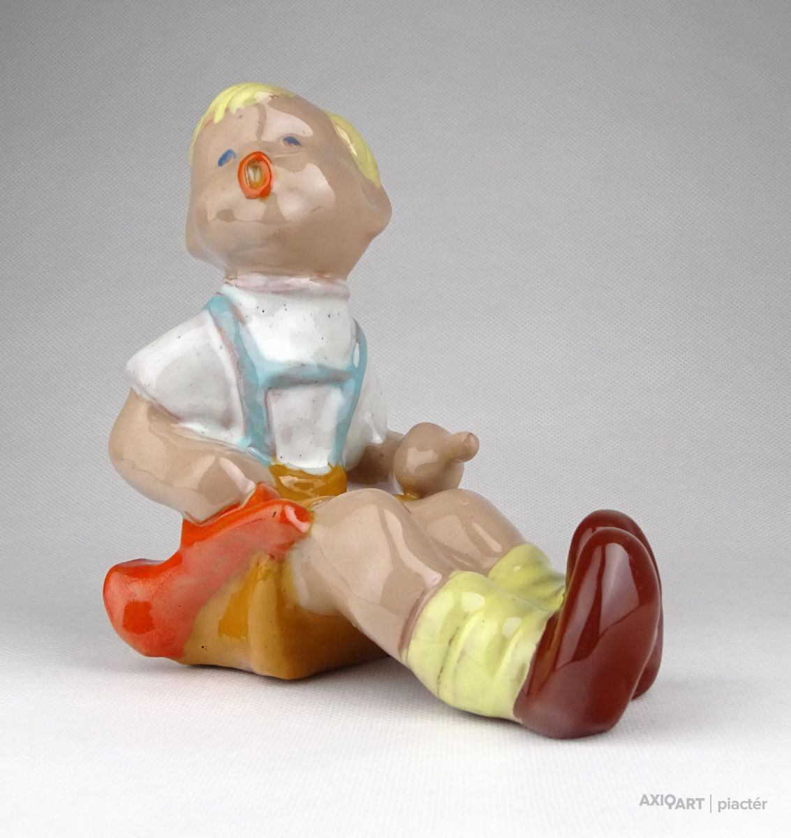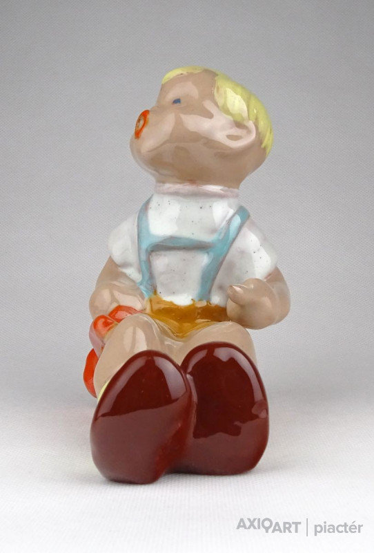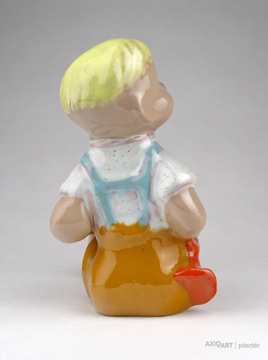 [1A009/BX-9] Régi, hibátlan állapotú jelzett Komlós kerámia fiú, kezében trombita. Art deco kerámia a 30-as évekből. Alján jelzés: KOMLÓS KERÁMIA BUDAPEST Magasság: 13 cm Szélesség: 8 cm Hosszúság: 12.5 cm Súly: 0.38 kg