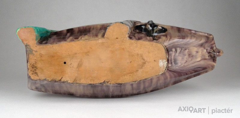 [1A016/BX-9] Régi, ép állapotú, art deco Komlós kerámia figurális hamutál. Csónakban ülő kalapos fiú. Az evezőt profi restaurátor javította. Rajta gyártói Komlós címke, rajta felirat: KOMLÓS MADE IN HUNGARY Magasság: 21 cm Szélesség: 12.5 cm Hosszúság: 31.5 cm Súly: 1.775 kg