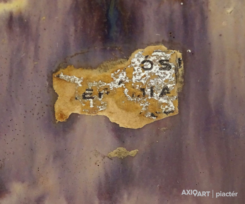 [1Y029/Z018] Olaj farost festmény, üveglap mögött, hibátlan képcsarnokos keretben. Hátoldalán Képcsarnok Vállalat papír címkéje: A művész neve: SCHÉNER MIHÁLY A kép címe: TÁJ Magasság: 66.5 cm Szélesség: 86 cm Súly: 6.54 kg Schéner Mihály festő, grafikus, szobrász, keramikus, bábtervező Medgyesegyháza, 1923-01-9 Elhalálozott: Budapest, 2009. május 11. Honlap: http://www.kormendigaleria.hu/kiadvany.html 1942-1947: Magyar Képzőművészeti Főiskola, tanára: Rudnay Gyula. 1978: Munkácsy-díj; 1984: érdemes művész; 1989: kiváló művész; 1995: Kossuth-díj. 1992-től a Magyar Művészeti Akadémia, 1993-tól a Széchenyi Irodalmi és Művészeti Akadémia tagja. 1956-ig tanított. 1982: Nagyatádi Faszobrász Alkotótelep, 1985: Nemzetközi Acélszobrász Alkotótelep, Dunaújváros. A stílusában felismerhető, mégis sokféle műtárgyat létrehozó ~ gazdag, állandóan alakuló életműve a folyton változó világban helyét kereső, az alkotói szabadságot megvalósító XX. századi képzőművész példázata lehetne. Magát expresszív-szürrealista alkotónak nevezi. Egyaránt dolgozik festékkel, textillel, fával, fémmel. Rajzol, szerkeszt, farag, épít, gyúr, varr és ragaszt, felhasználja a mézesbábok öntőformáit. Festő, rajzoló, textilszobor- és bábkészítő, fazekas, asztalos, esztergályos. Háromlépcsős folyamatban gondolkozik: rajzban tervez, majd fest, szobrot készít, “formába önt”, mindig a végső plasztikai megoldást keresi. Ami állandó és mégis játékosan változékony megjelenésű Schéner művészetében, az a gyermekkori emlékek által meghatározott népi mesterségek iránti tiszteletet kifejező motívumkincs, a tárgyi folklór formakészlete, amely már-már kézjegyként ismétlődik munkáin. Mitologikussá nőtt képzelete új lényeket teremt, pl: a Pigulát, amely disznótestű, emberfejű teremtmény. Schéner festményein a szürrealista motívumokat konstruktív szerkezetbe rendezi, a geometriát és az organikus természeti motívumokat egyaránt beépíti műveibe. A népi, népművészeti formakincsből merített lovas huszárok, betyárok, szegénylegények cifra szűr mentéje, piros csákója, fekete csizmája, az önálló életet élő zsinórdíszek és mézeskalács bábok, a kiskocsik a gyermekkori vásárok, búcsúk színes forgatagába vezet. A primér motívumokat aztán felváltják a vastagon felhordott felületbe karcolt jelek, vonalhálózatok, amelyek a játszó gyermek homokba rajzolt ábráit, a pásztorember fába vésett üzeneteit, az ősember barlang falába rótt mágikus jeleneteit idézik meg. A művész pillanatnyi érdeklődésének megfelelően a színek búvópatakként tűnnek el és jelennek meg ismét. A 60-as években leginkább a formákkal való játék érdekelte, a festmények felülete egyre gazdagodott: a táblaképek felületén applikációk jelentek meg, vagy lemállasztott rétegek hagyták maguk után hiányukat, motívumok nélküli ősformák, archetipikus képzetek bukkantak fel művészetében. A véletlenszerűnek látszó rétegekkel való játék azonban tudatos komponálás eredménye, amely később nyilvánvaló ritmusnak és formai szerkesztettségnek adja át a helyét, mint a Törvénytáblák c. sorozaton. A különböző művészi kifejezési formák egymásra termékenyítő hatással vannak, át- meg áthatják egymást. Textilszobrai, amelyekkel új műfajt teremtett, ugyanazzal az automatikus, expresszív-szürrealista módszerrel készülnek, mint festményei. A hagyományosan a népművészetben alkalmazott anyag, a filc lehetőséget ad a népi formakincs felelevenítésére, amely azonban a művész különös szürrealista átiratában jelenik meg. A szívekkel kivarrt, zsinórdíszes Posztókotlós c. művén mézesbábok lógnak, hátán huszárok lovagolnak. Egész sor textilből készült kéz-plasztikát alkot, amelyeket az ujjakra rávarrt díszekkel öltöztet, személyesít meg. A színes-különös világból aztán ~ újra puritán képi és formai rendbe juttatja el a nézőt, majd nemsokára tépett, gyűrt, vágott, csorgatott, repedezni hagyott szenvedélyesen vonagló képi felületeket hagy hátra. Schéner készített apró gyermekjátékokat, térstruktúra-tereket, mászókákat is. A magyar népi formák mellett szürreális játékaiban gyakran alkalmaz görög mitológiai alakokat, “elkentaurosodott” lovakat, Gorgó-fejeket, sellőket, hárpiákat, Pán-ábrázolásokat. Schéner nemcsak saját művészetéről publikál, hanem művésztársairól is számos írása jelenik meg, elsősorban az Új Auróra c. folyóiratban, amelynek egy ideig főmunkatársa volt. Irodalom kiállítása, Magyar Építőművészet, 1962/4. Húsz év után, Művészet, 1965/4. BOZÓKY M.: ~, Tiszatáj, 1968/5. PERNECZKY G.: Nincs uborkaszezon, Élet és Irodalom, 1969. augusztus 8. BARÁNSZKY-JÓB L.: ~, Művészet, 1969/9. LÁSZLÓ GY.: ~ kaposvári kiállítása, Jelenkor, 1969/4. MAJOR M.: Pásztorok, betyárok, huszárok - kezek, Tükör, 1970. szeptember 15. FRANK J.: Bemutatjuk ~t, Élet és Irodalom, 1972. május 6. ról kiállítása ürügyén, Képzőművészeti Almanach, Budapest, 1972 Sötétkék kokasok, Élet és Irodalom, 1973. szeptember 9. MAJOR M.: ~ játékai, Élet és Irodalom, 1974. július 27. BARTA J.: Egy különös művész, Alföld, 1974/6. VADAS J.: Szárnykészítők, Élet és Irodalom, 1975. október 4. JUHÁSZ F.: A halál ellen játszani, Élet és Irodalom, 1975. május 17. PAP G.: Kincsek és műkincsek, Művészet, 1975/6. P. SZŰCS J.: Az utak kettéválnak, Művészet, 1978/3. Békési művészet, Művészet, 1978/7. SZAMOSI F.: ~ [kismonográfia], Budapest, 1978 VADAS J.: Játék a játékkal, Élet és Irodalom, 1979. augusztus 18. NÉMETH L.: ~ műveiről, Művészet, 1979/4. MIKLÓS P.: Mit akar ez a múzeum?, Művésze