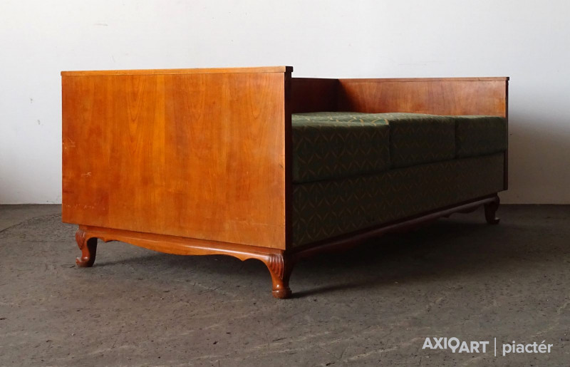 Régi LINGEL, neobarokk lábas nagy méretű heverő, kanapé, ágy. Ágyneműtartóval rendelkezik. Rajta szépen kárpitozott epedarugós, kényelmes matracok találhatók. A kárpit egy helyen kissé sérült, lásd fotó. Párdarabját is árulom.