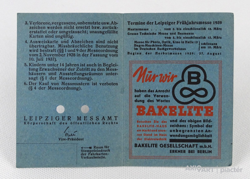 Régi Lipcsei Tavaszi Vásár belépőkártya 1939 LEIPZIGER FRÜHJAHRSMESSE 1939