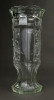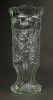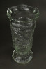 [1M277/X277] Régi formába préselt üveg váza, virágváza. Oldalán plasztikus magyal díszítés látható. Formába préselt üveg váza. Magasság: 20.5 cm Szélesség: 9.5 cm Súly: 0.38 kg