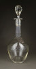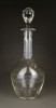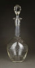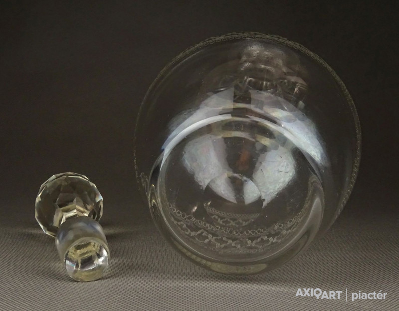 Hibátlan állapotú, régi fújt francia, csiszolt, maratott üveg kiöntő, hibátlan üveg dugóval.