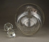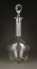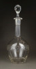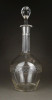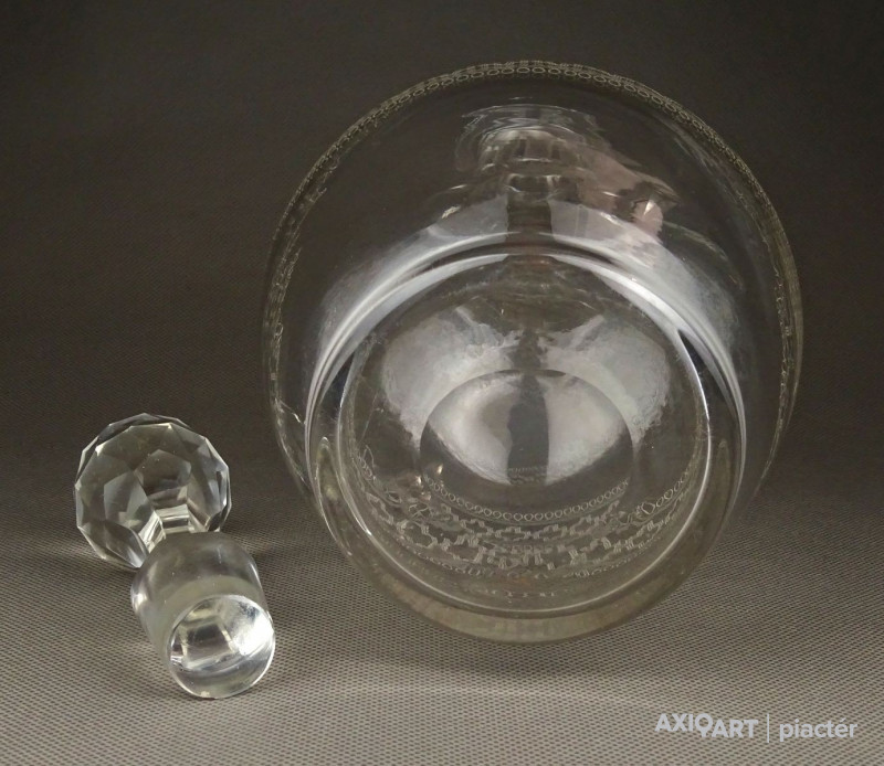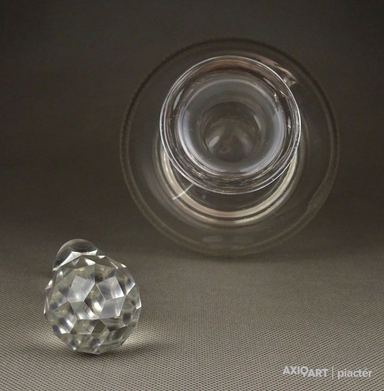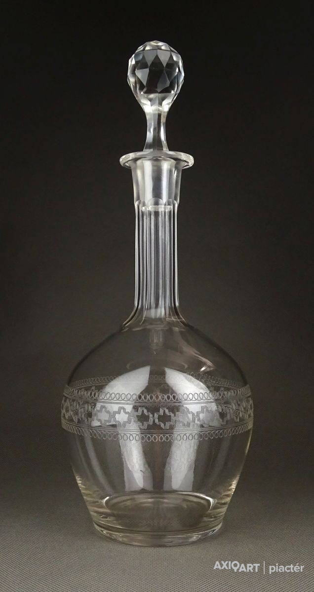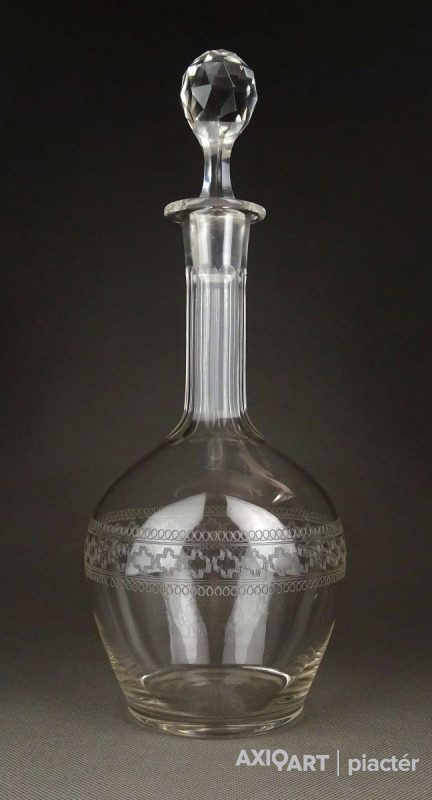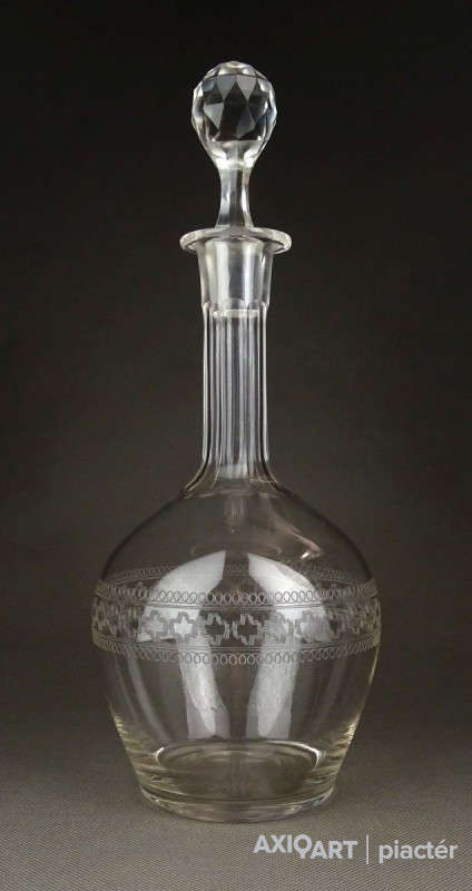 Hibátlan állapotú, régi fújt francia, csiszolt, maratott üveg kiöntő, hibátlan üveg dugóval.
