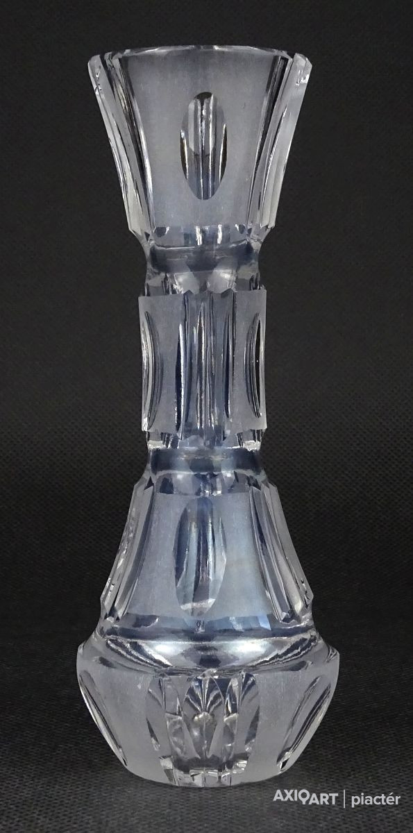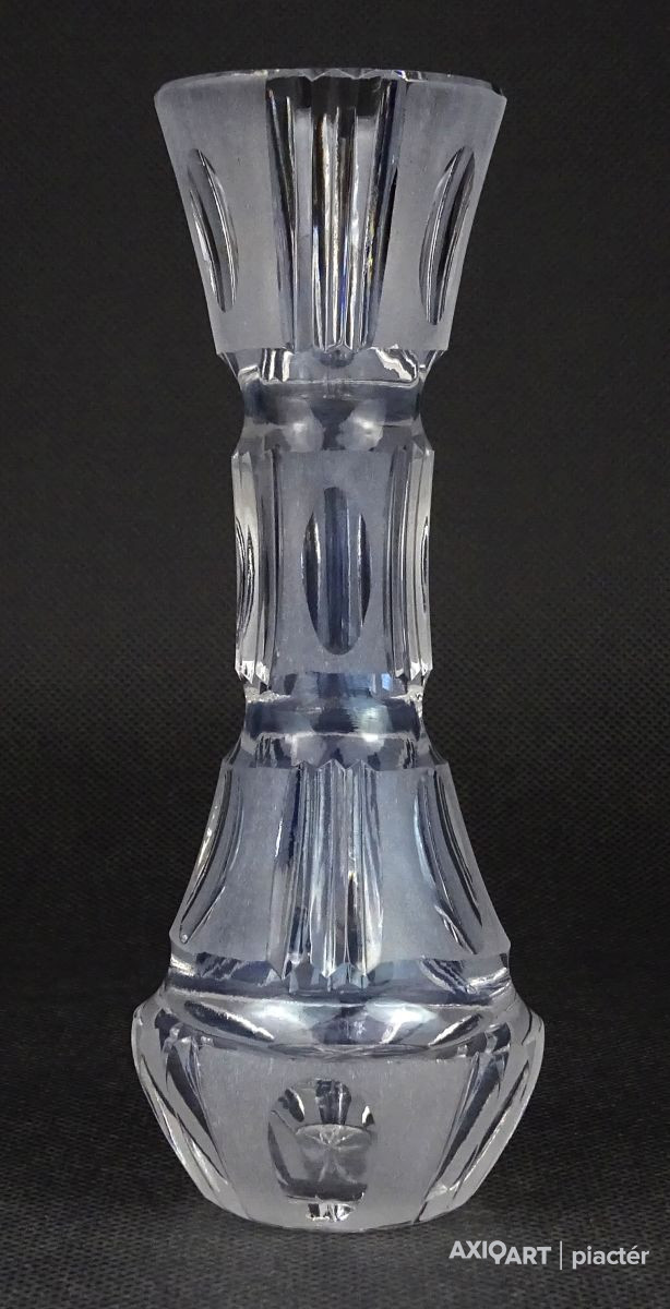 [1O211/X228] Szép állapotú, csiszolt, maratott felületű üveg váza, szálváza egy szál virág számára. Skandináv üveg váza. Magasság: 15 cm Szélesség: 5.5 cm Súly: 0.18 kg