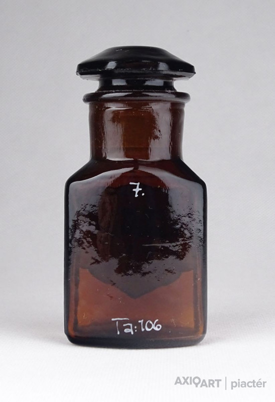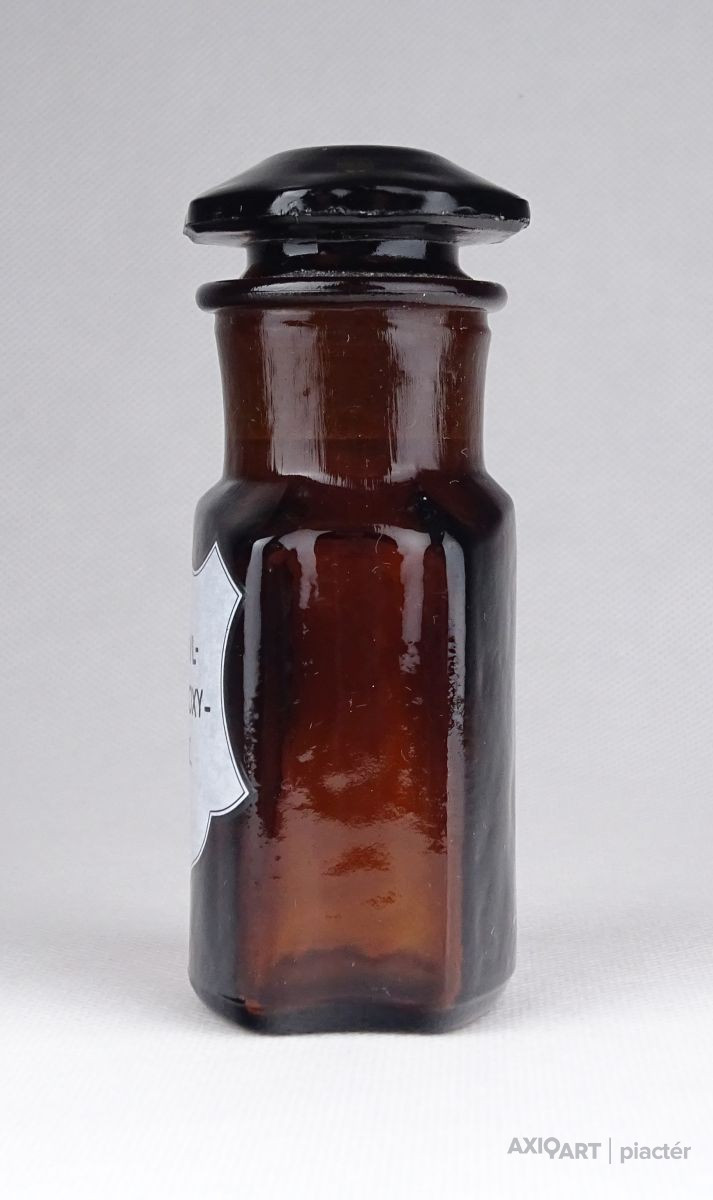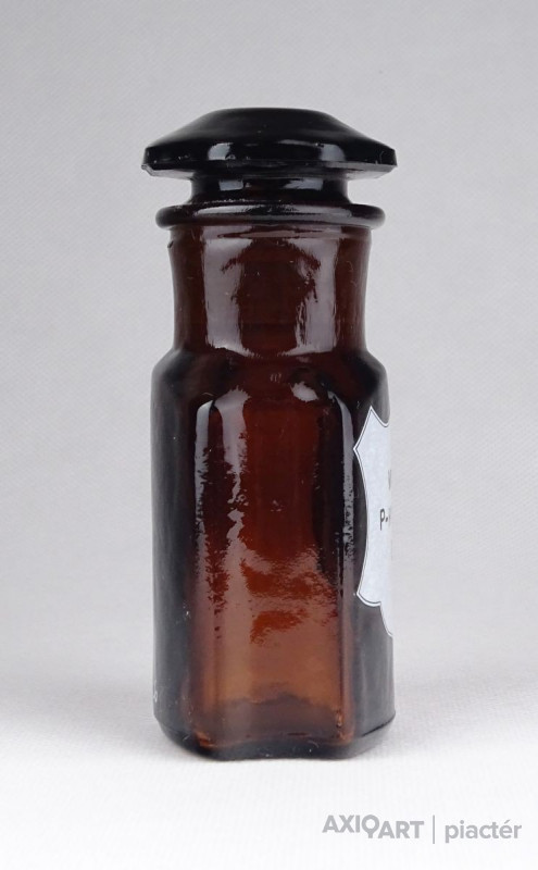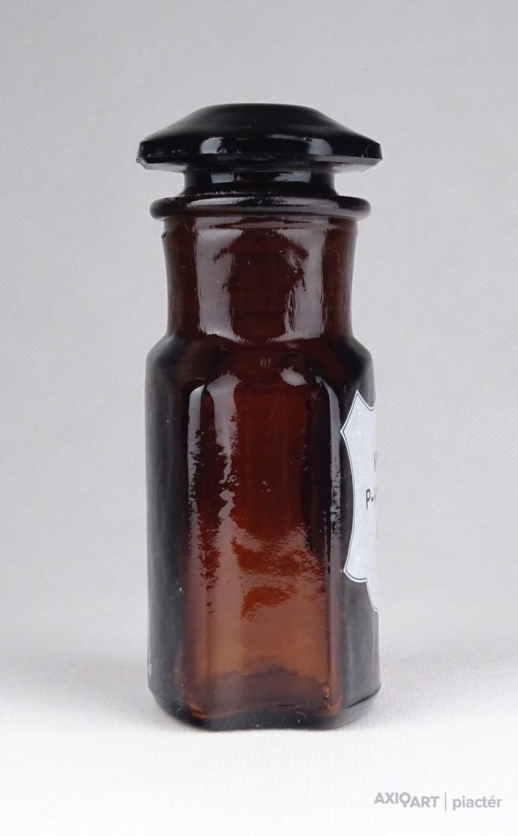Régi, szép állapotú, barna patika üveg, gyógyszerészeti tároló üveg.