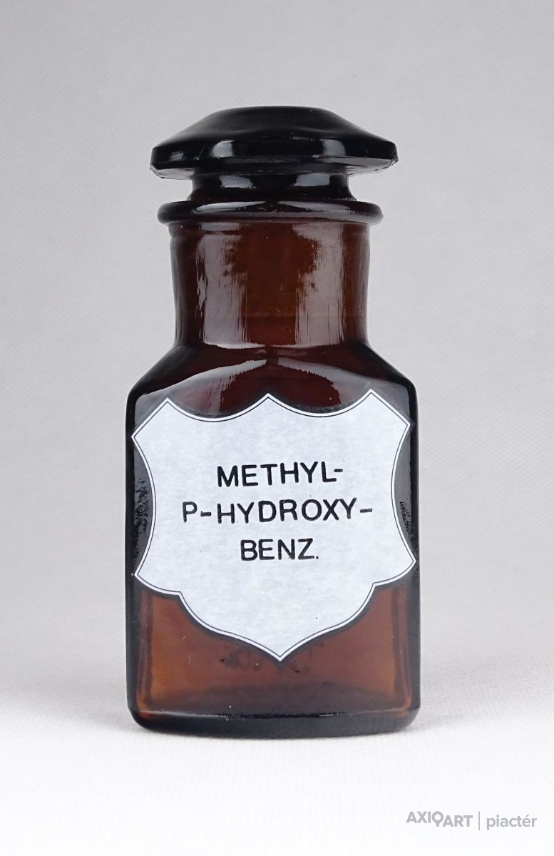 Régi METHYL P HYDROXY BENZ patika üveg 10 cm