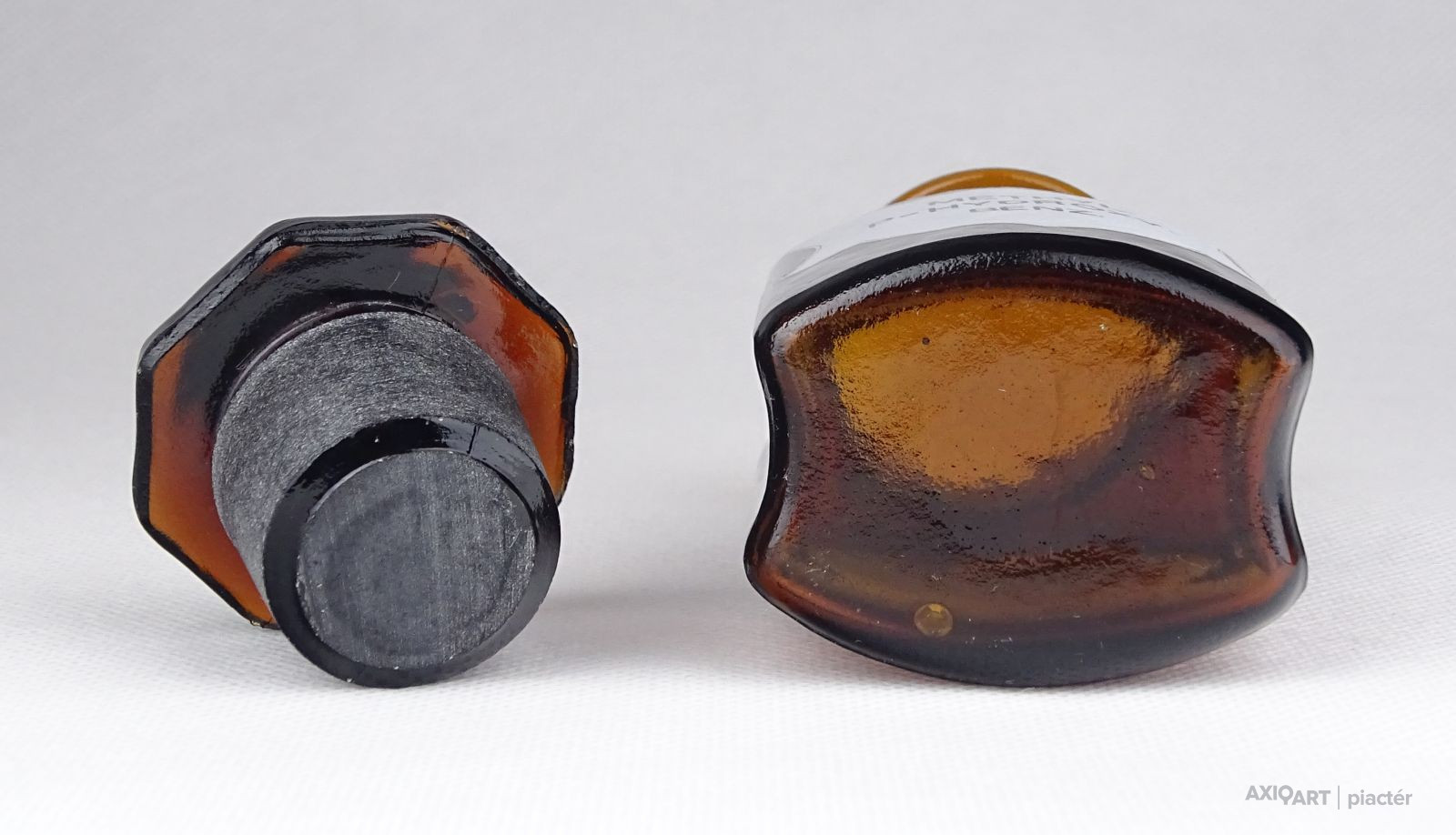 [0Y784/Z047] Régi, szép állapotú, barna patika üveg, gyógyszerészeti tároló üveg. Oldalán címke, rajta felirat: METHYL P HYDROXY BENZ Magasság: 10 cm Szélesség: 4.5 cm Súly: 0.17 kg