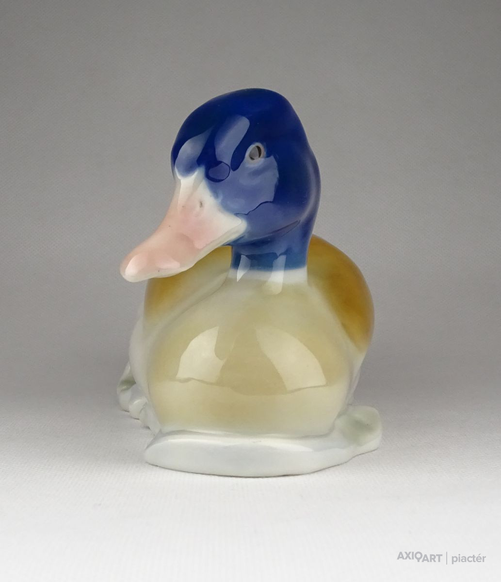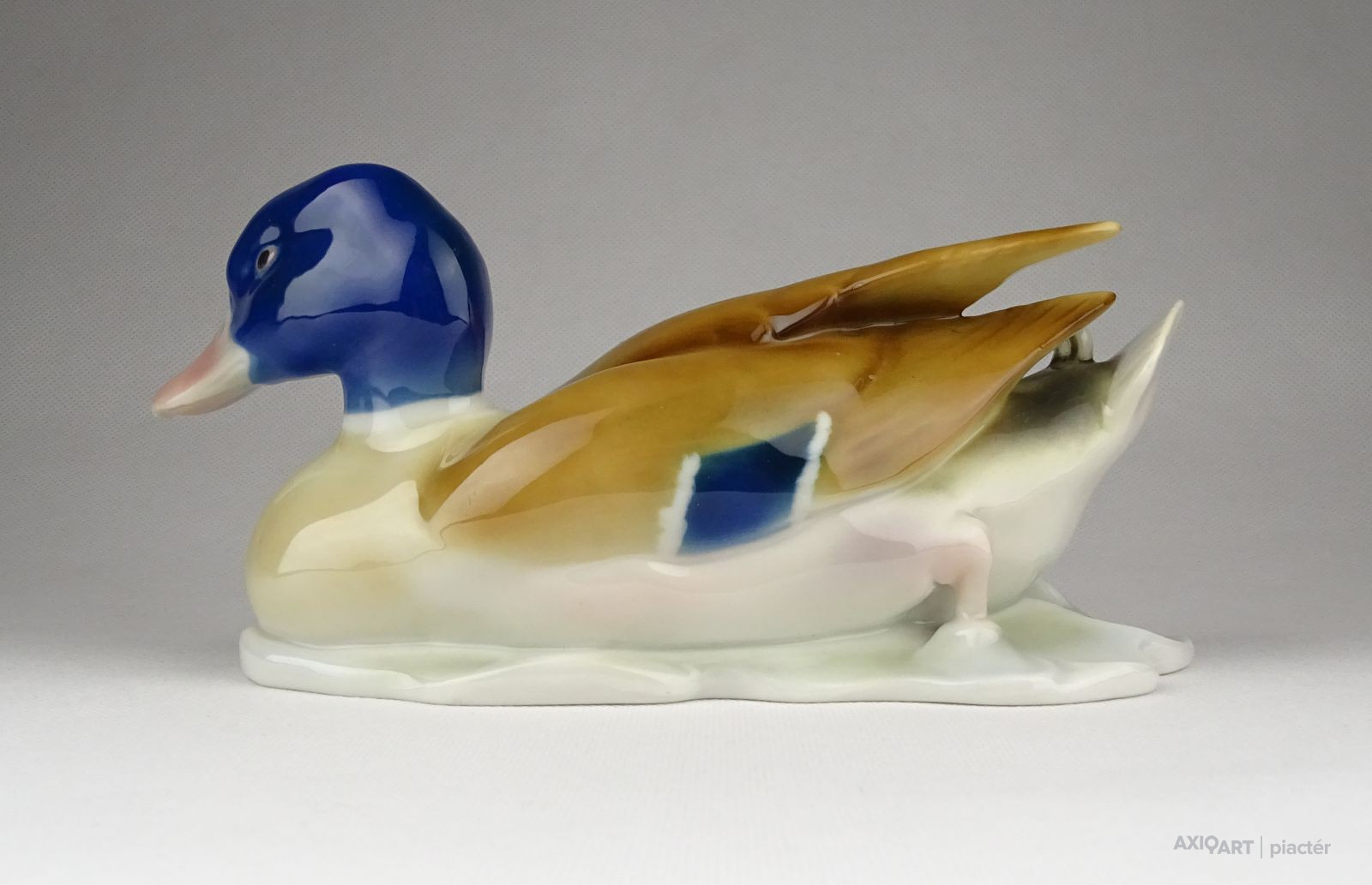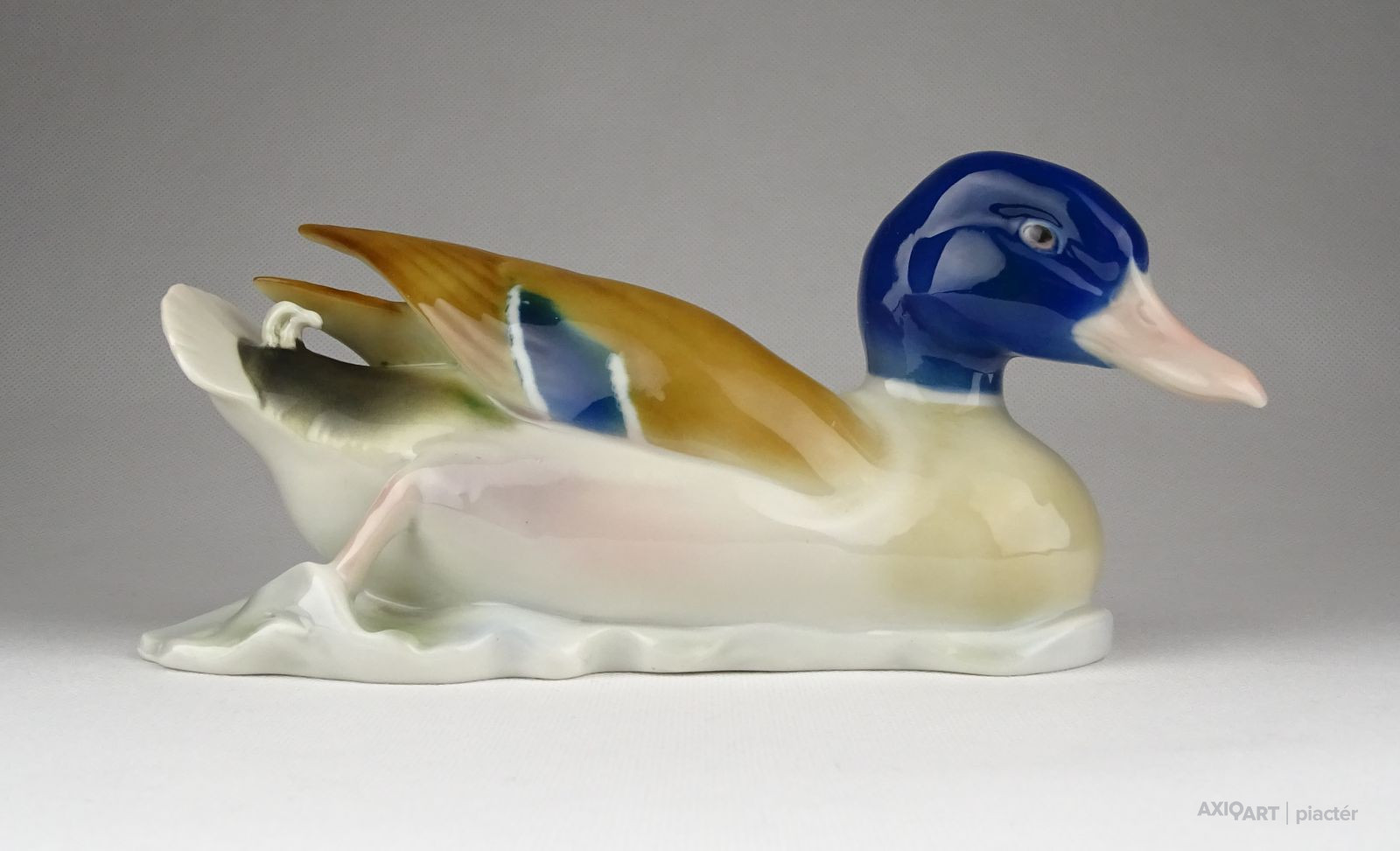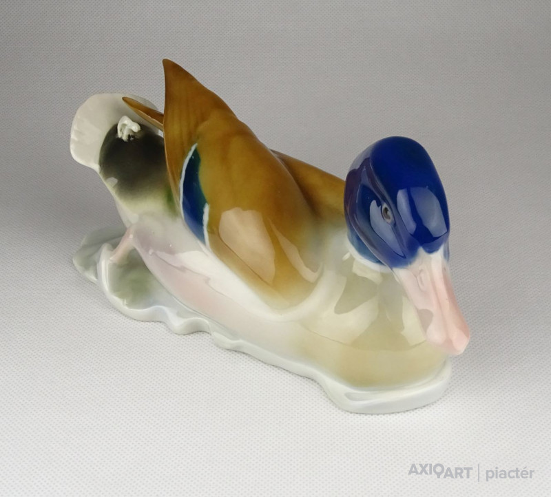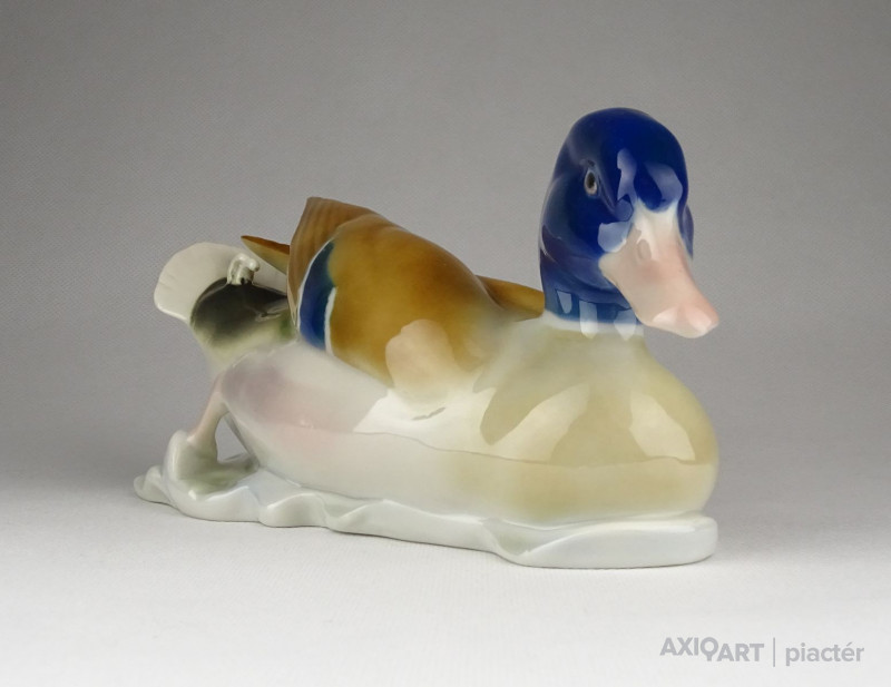 Hibátlan állapotú, talapzaton ülő, nagyméretű régi jelzett porcelán vadkacsa.