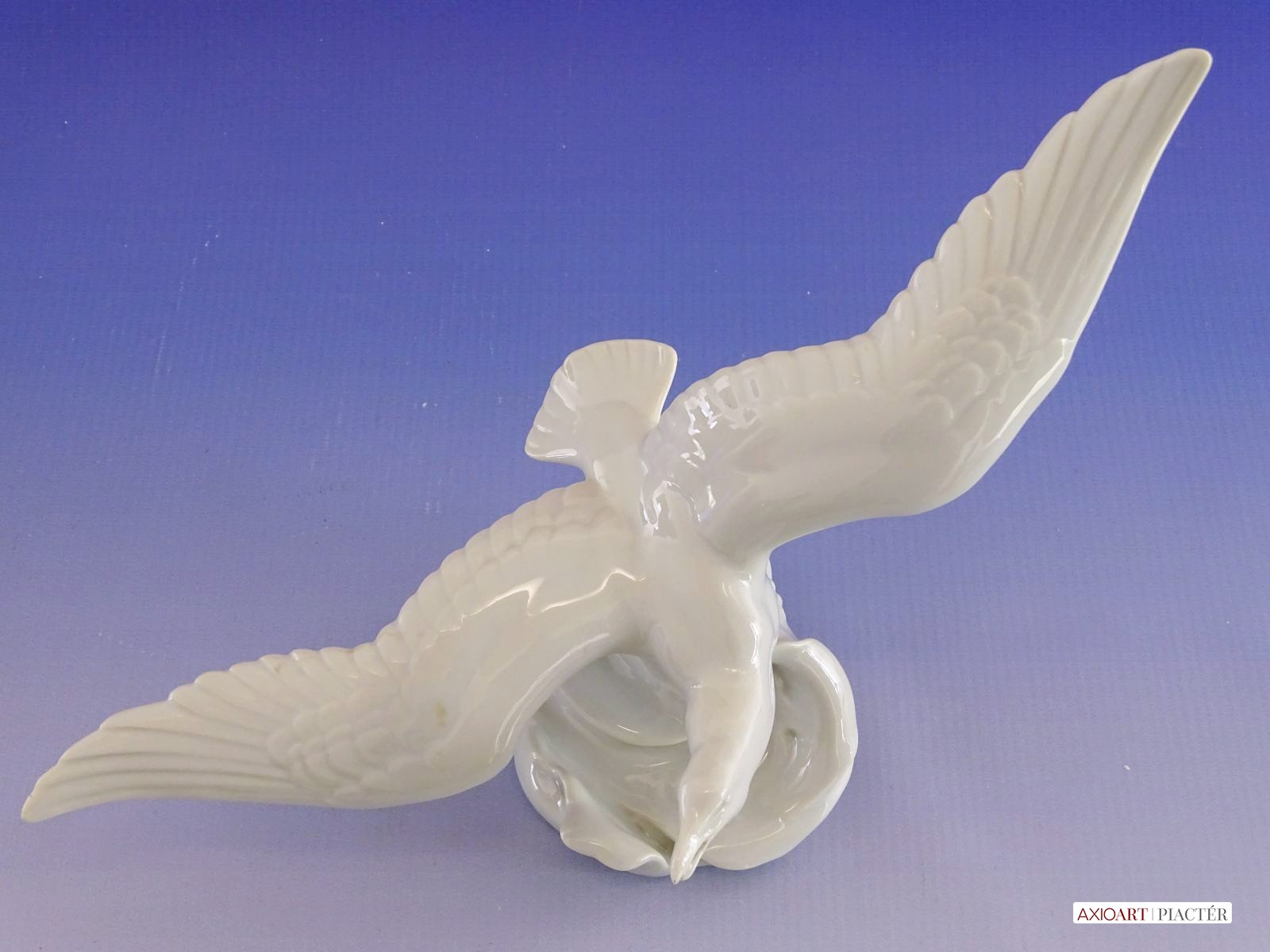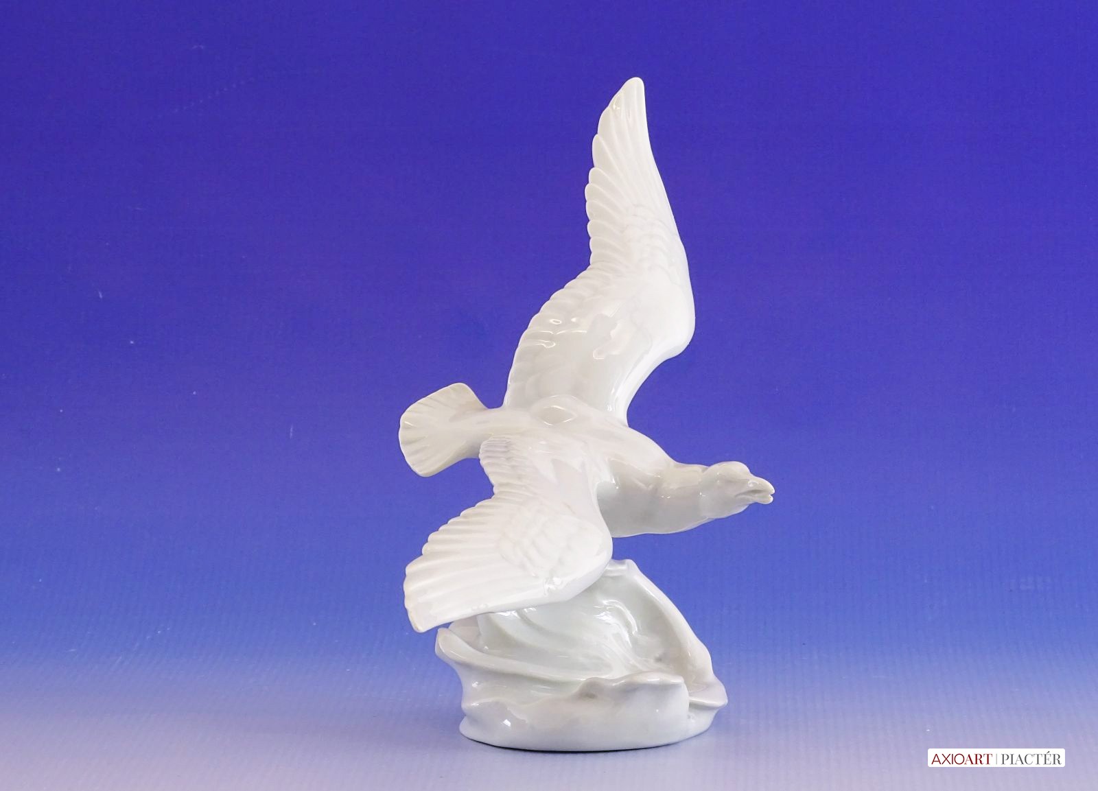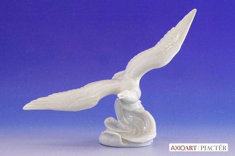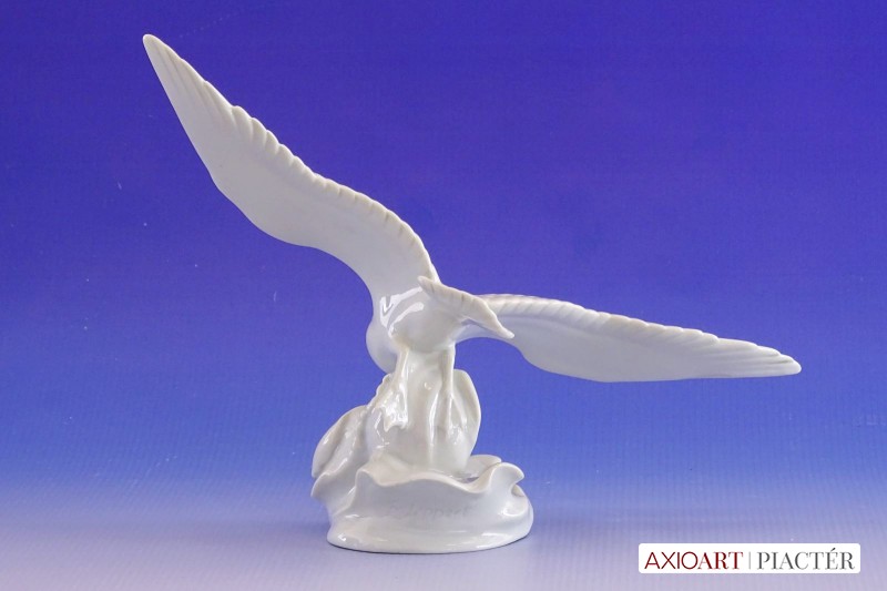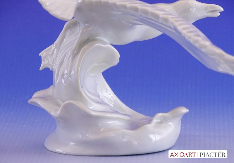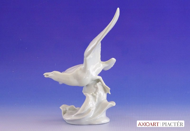 Hibátlan állapotú, régi, jelzett porcelán sirály szobor talapzaton.
