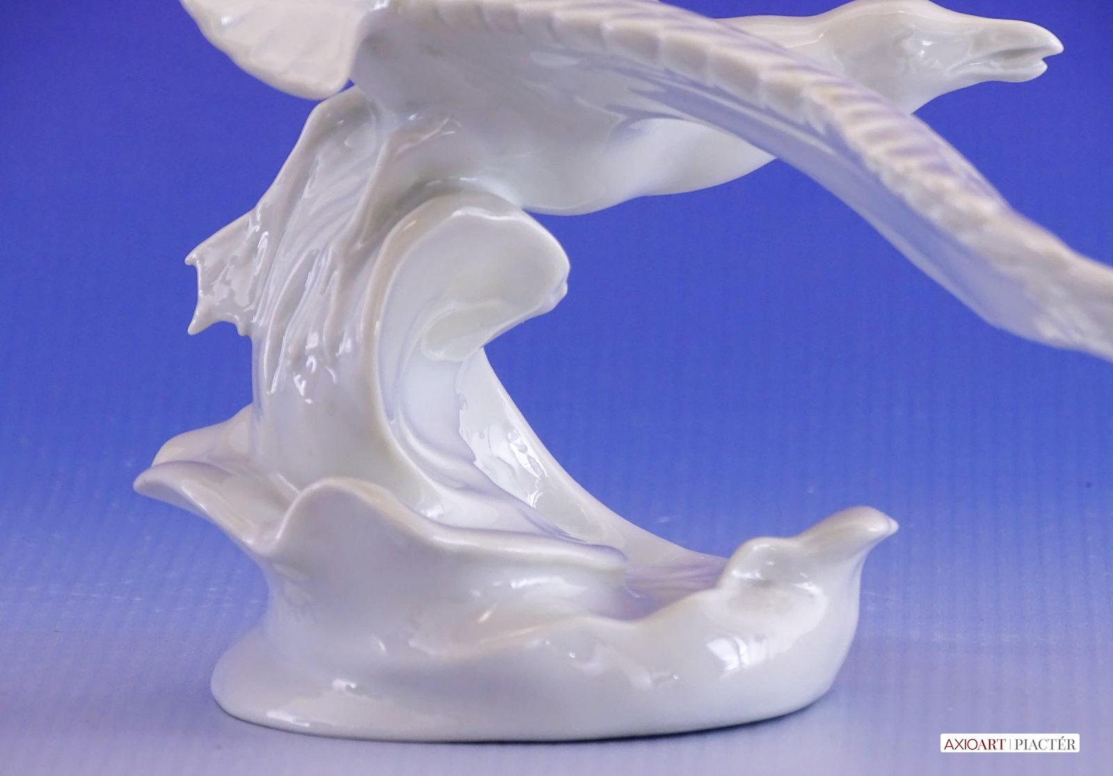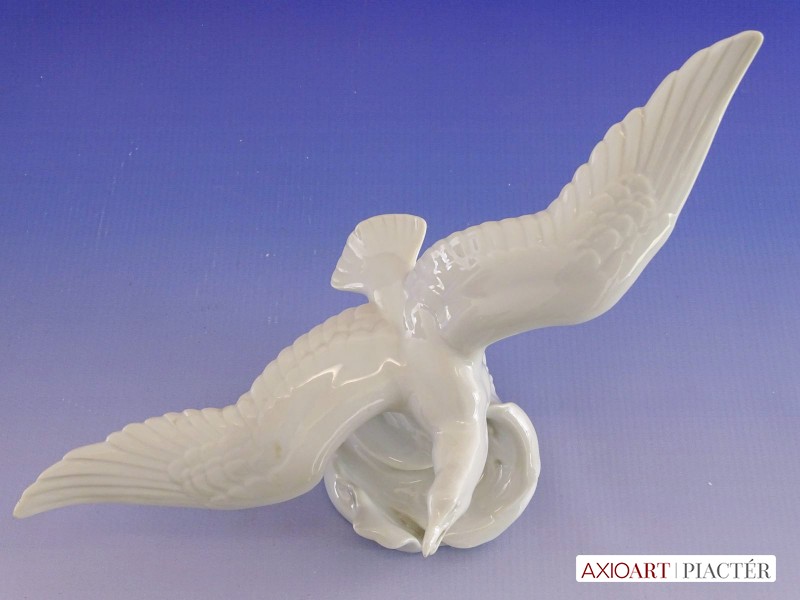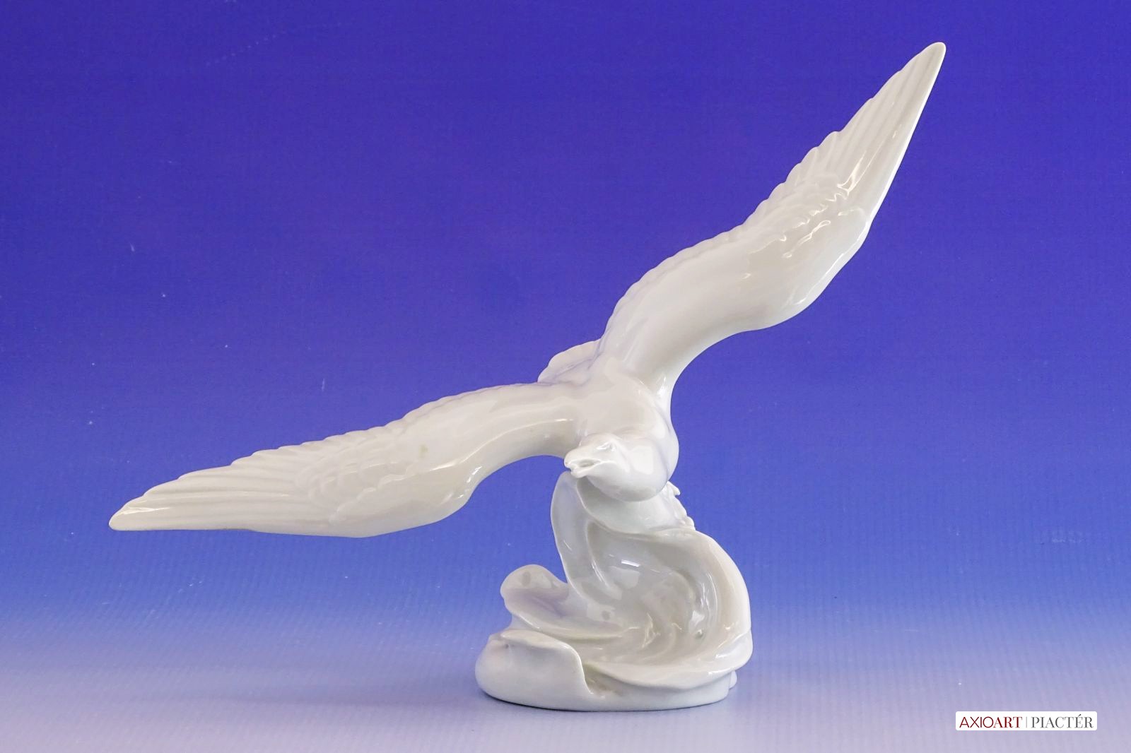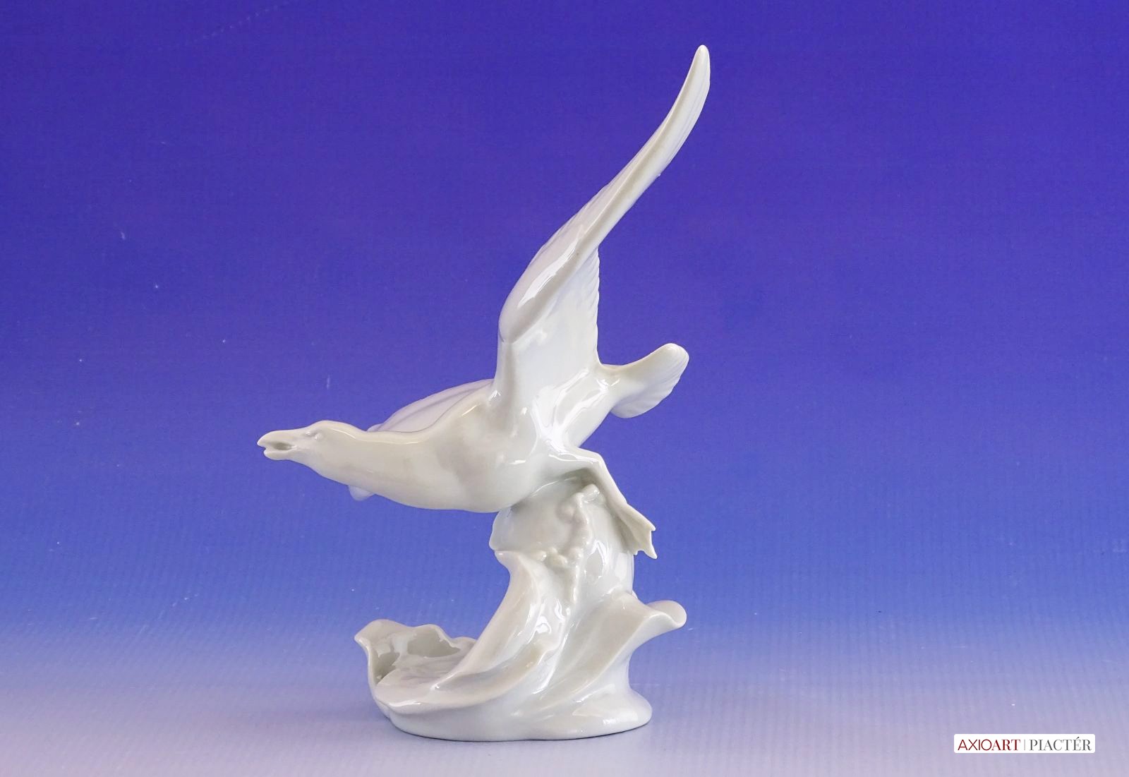 Hibátlan állapotú, régi, jelzett porcelán sirály szobor talapzaton.