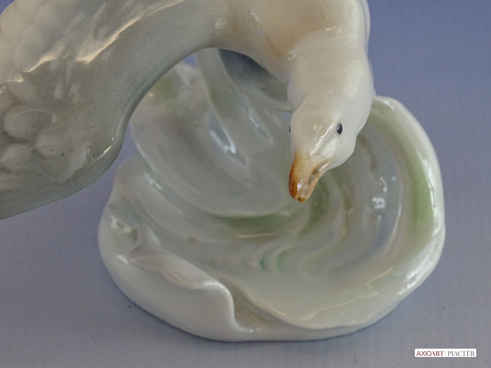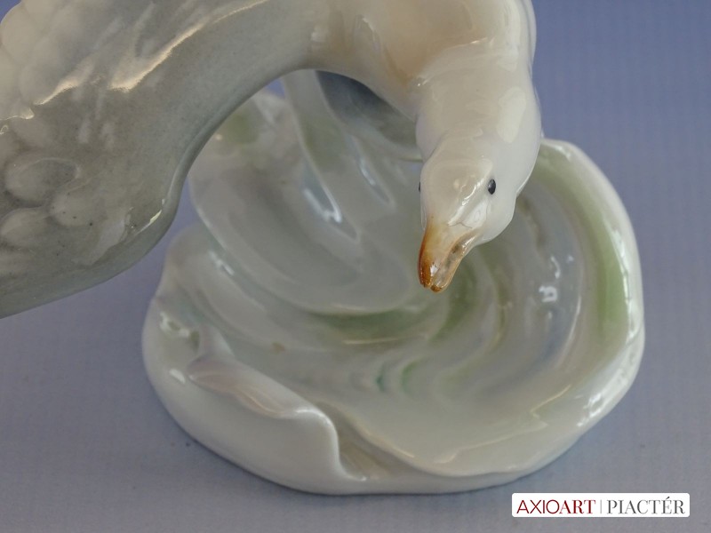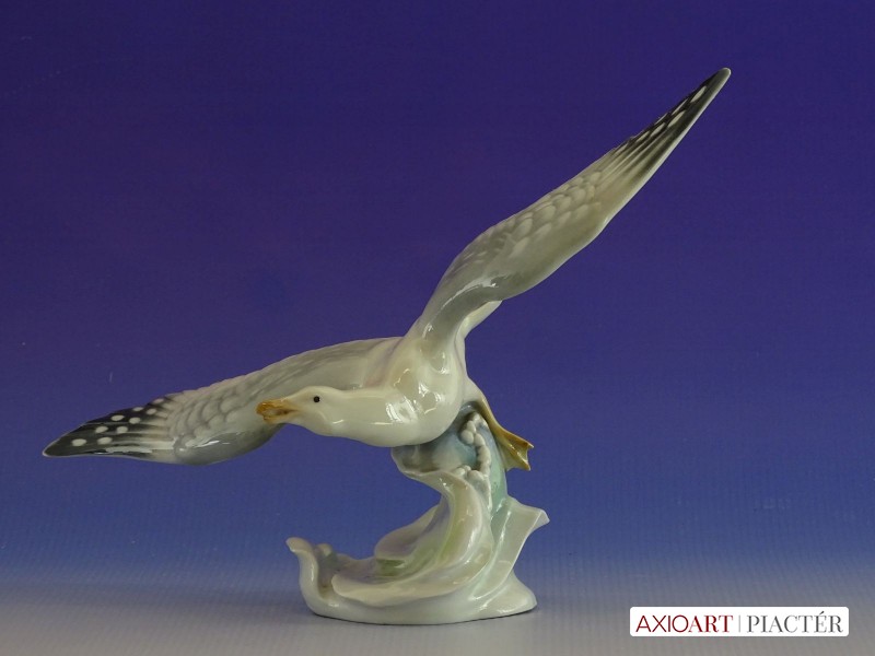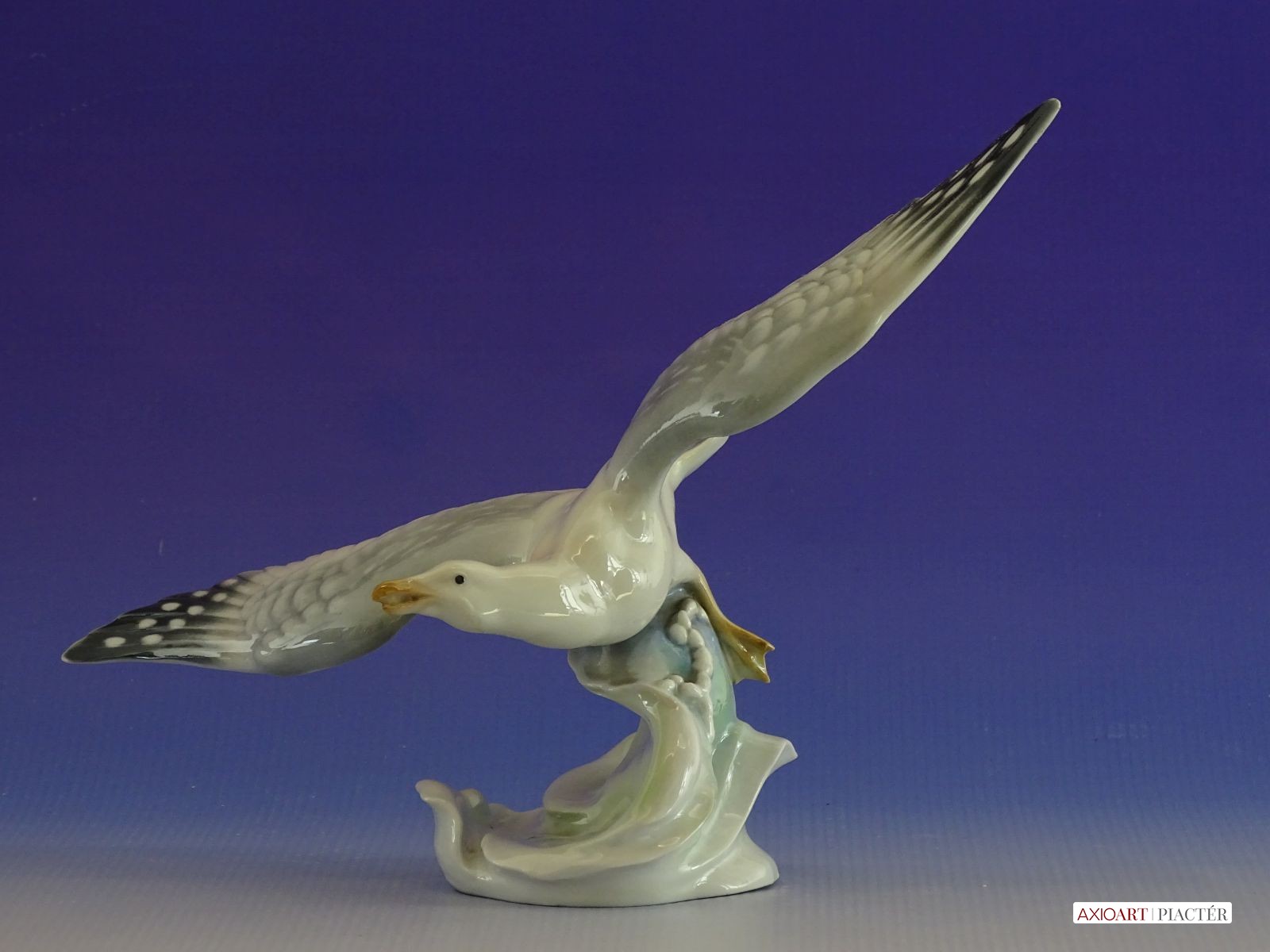 Hibátlan állapotú festett régi jelzett porcelán sirály szobor talapzaton.