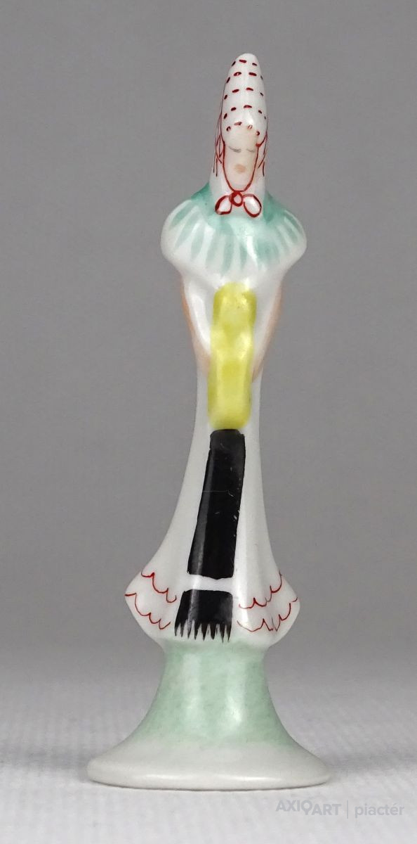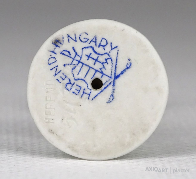 [1O710/Z016] Régi hibátlan állapotú, kis méretű jelzett talapzaton álló népviseletes, fejkendős nő porcelán szobor, figura. Alján kék Herendi márkajelzés: HEREND HUNGARY Mélynyomással: HEREND Formaszám: 5438 Magasság: 7 cm Súly: 0.01 kg