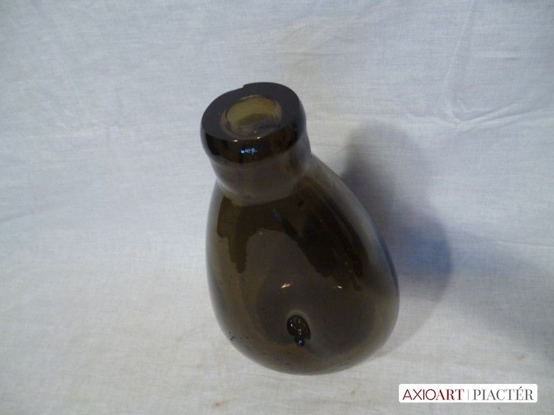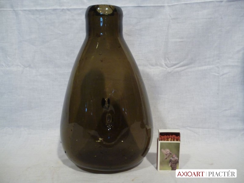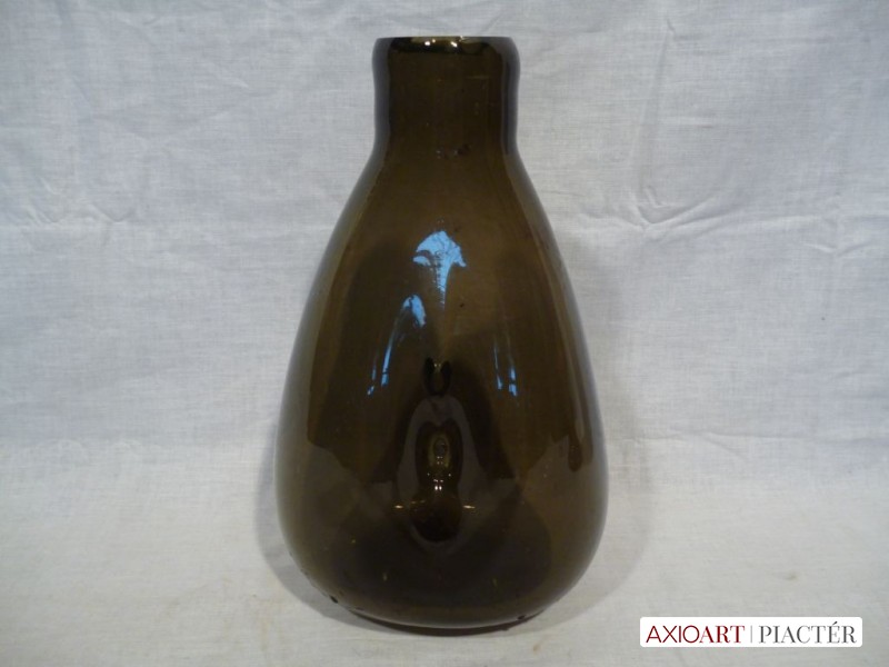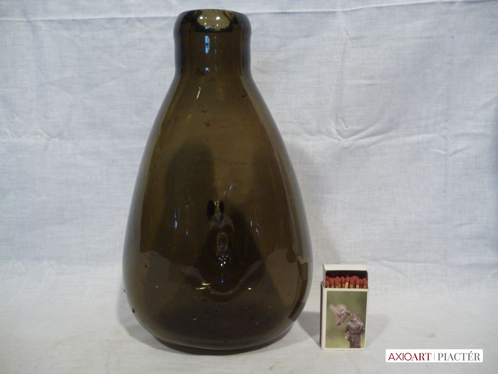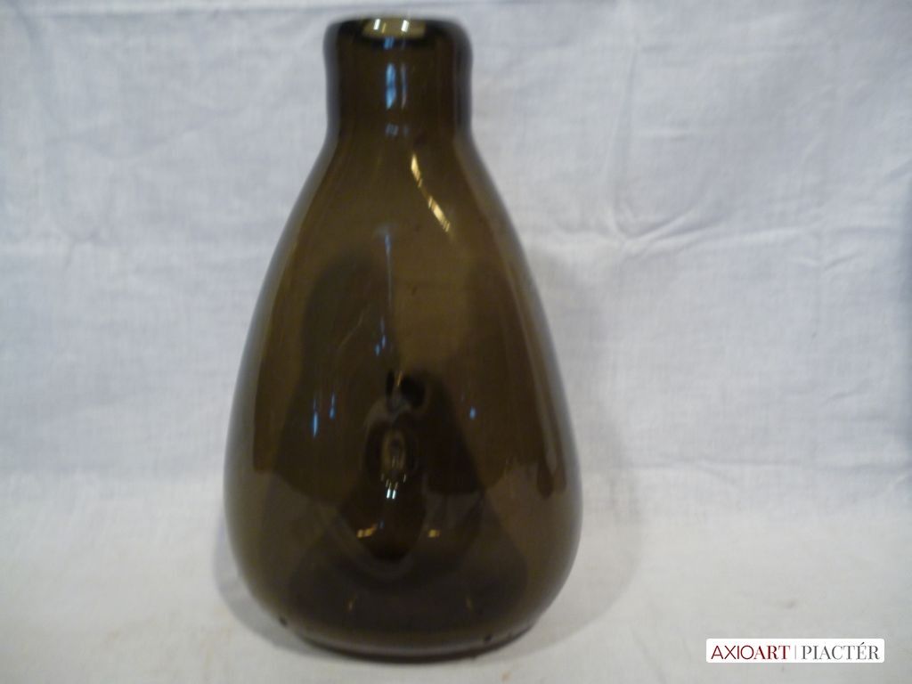 Szép állapotú régi művészi fújt üveg, füstüveg, extravastag falú design díszváza.
